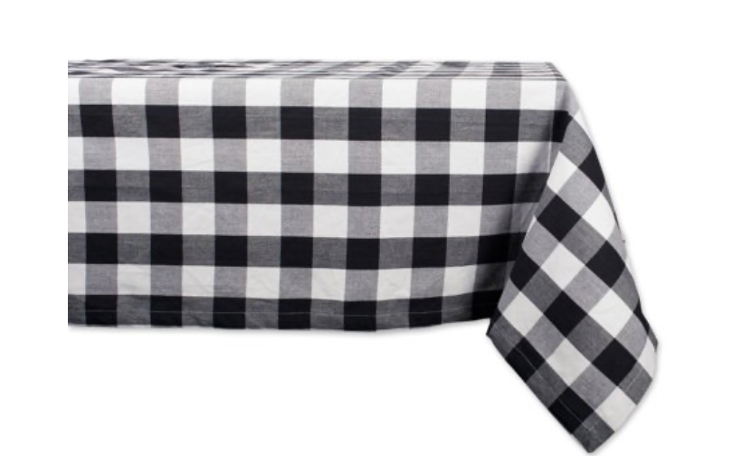 See tablecloth size chart in images to decide on size needed for your table.. Features EASY CARE - 100% cotton, machine washable, gentle cycle, tumble dry low. Low iron if needed; Adds a finishing touch Let your dinnerware stand out with our color fast wrinkle resistant tablecloths, sure to make a statement; Enhance your home - Add flowers, candles or a seasonal centerpiece to tablescape the foyer or console table, entryway table or any surface with our tablecloths Indoor/Outdoor Use; For more d cor - DII offers delightful home products including themed cloth napkins & rings, placemats table runners Click the DII link at the top of the page to explore our collections or search ; Buffalo Check Tablecloth; Specifications Color: Black; Weight: 2 lbs; .