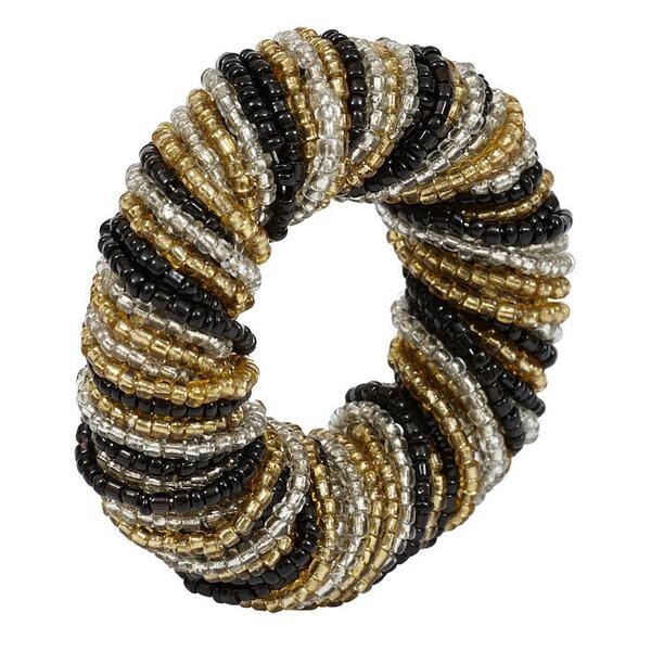 Glass Beaded Napkin Ring. Black, clear, and gold glass beads. 2.5 Inch Diameter 0.5 Inch Thick