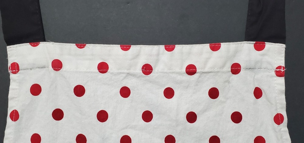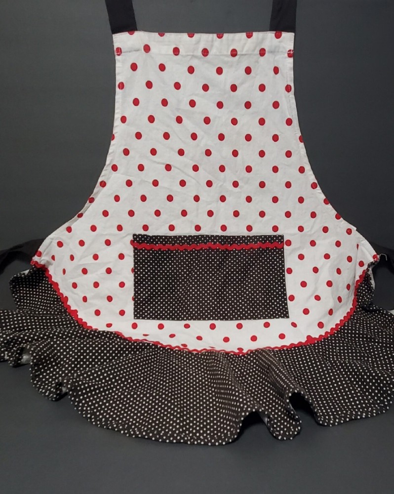 This apron adds lots of FUN to Baking in your kitchen!! This Design Imports apron is a stylish addition to any kitchen. The black, red, and white polka dot pattern gives it a vintage/retro feel, while the ruffle design adds a touch of fun. The apron features a front pocket for convenient storage and is made of machine-washable cotton material for easy cleaning.