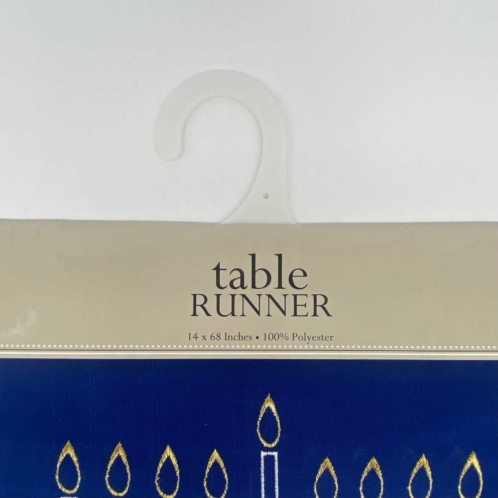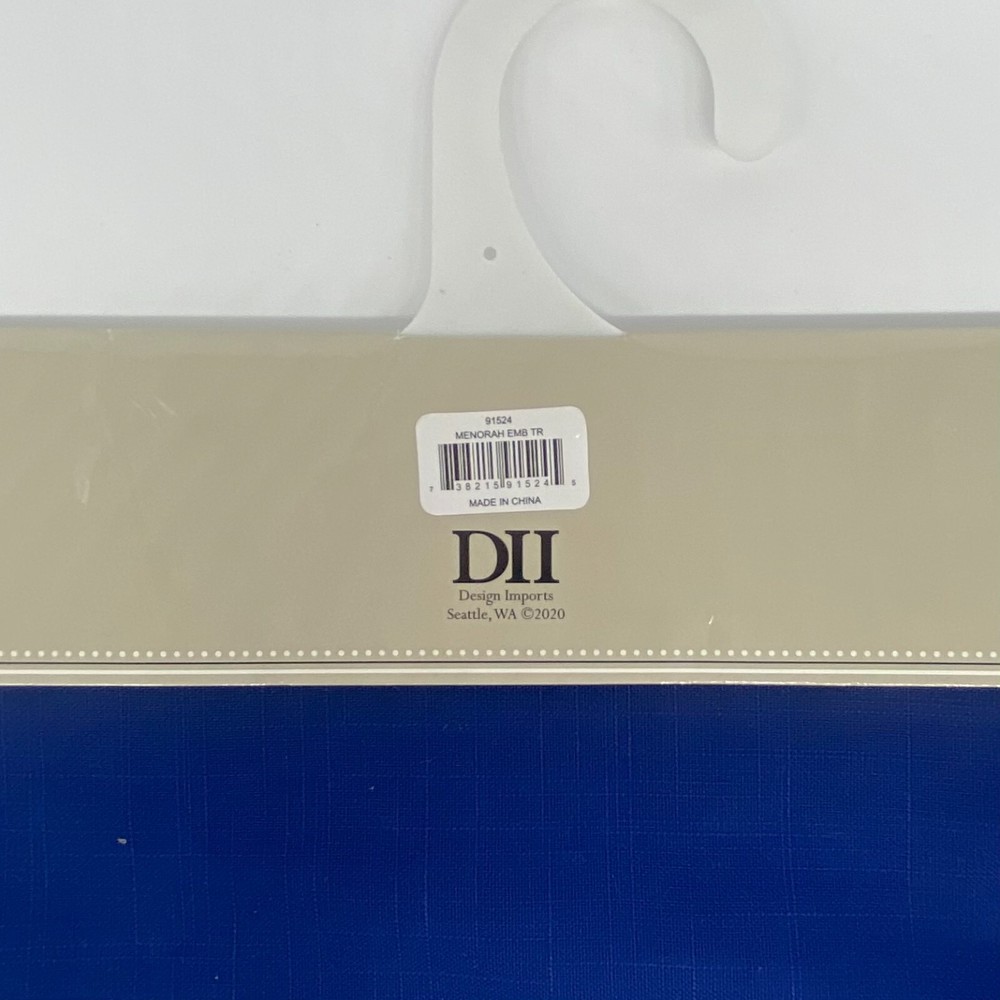 Design Imports DII - Blue Embroidered Menorah Hanukkah Table Runner - 14" x 68" Embroidered menorah at each end of the runner. No returns