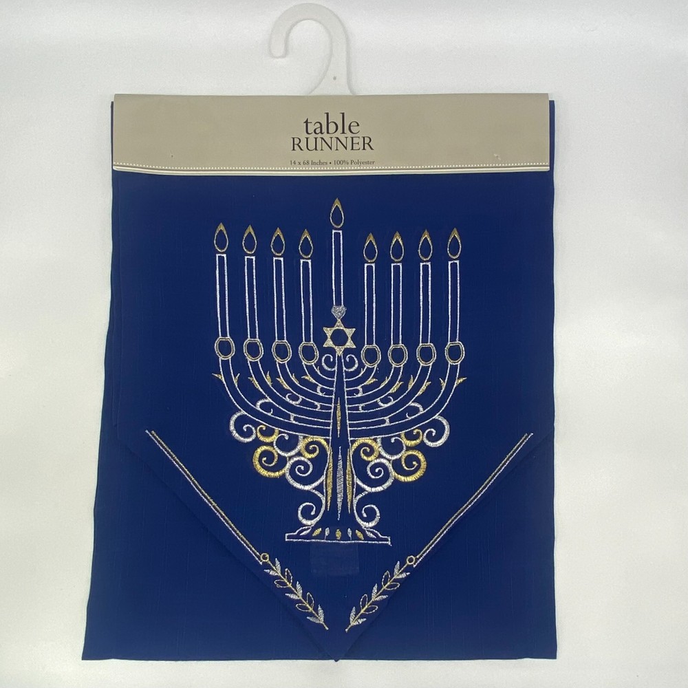 Design Imports DII - Blue Embroidered Menorah Hanukkah Table Runner - 14" x 68" Embroidered menorah at each end of the runner. No returns...