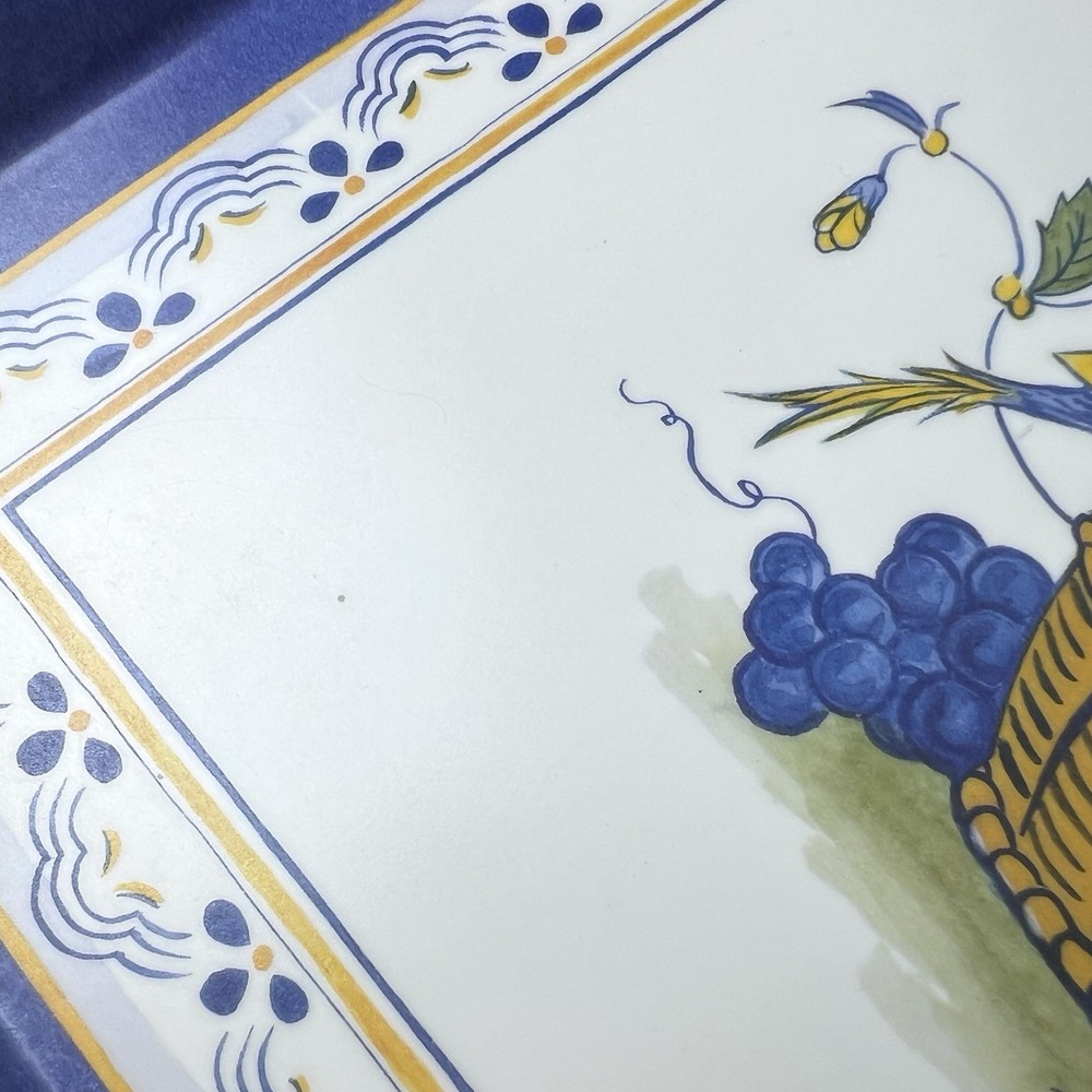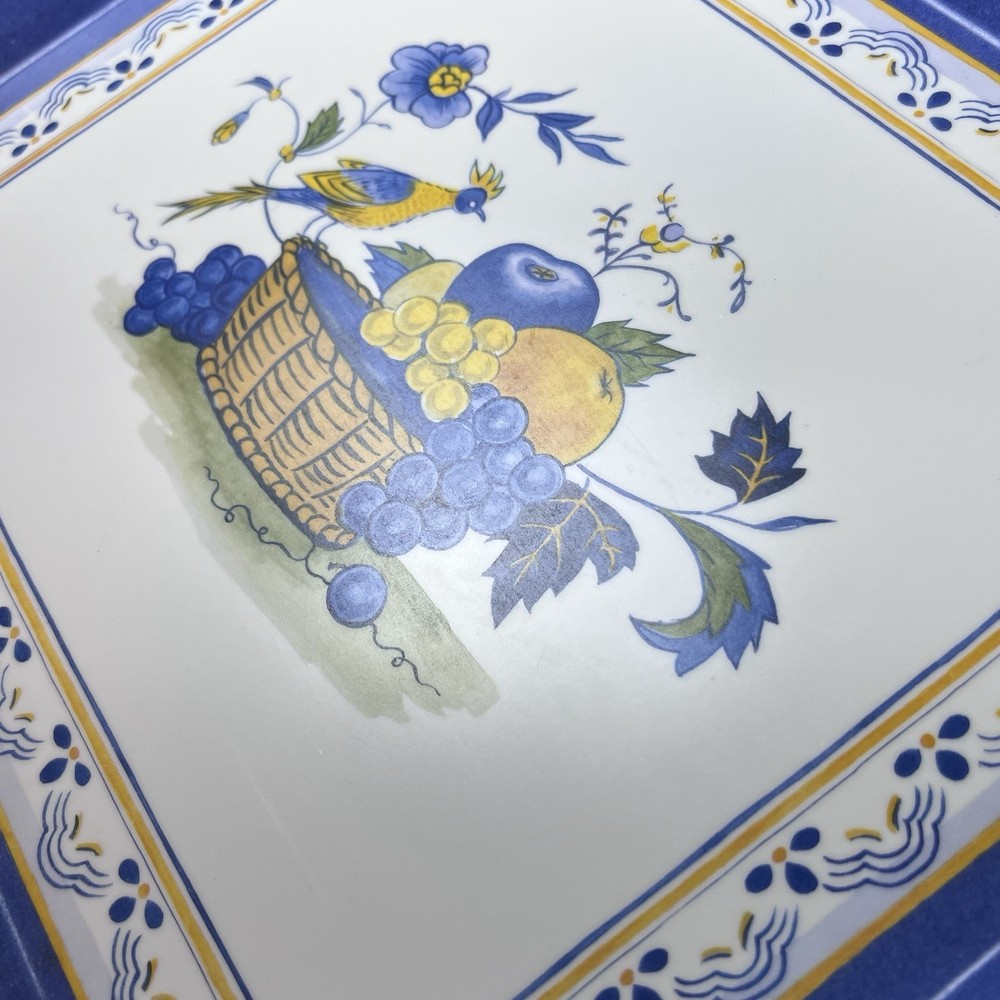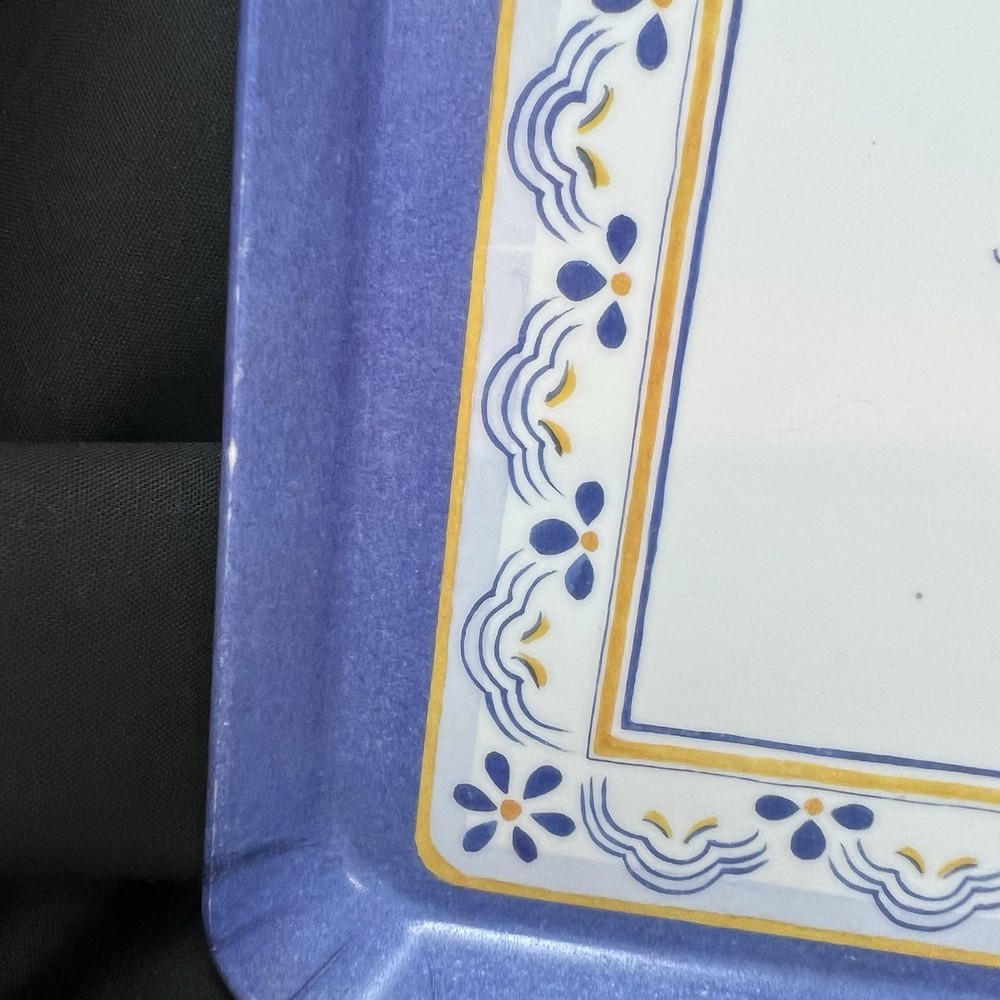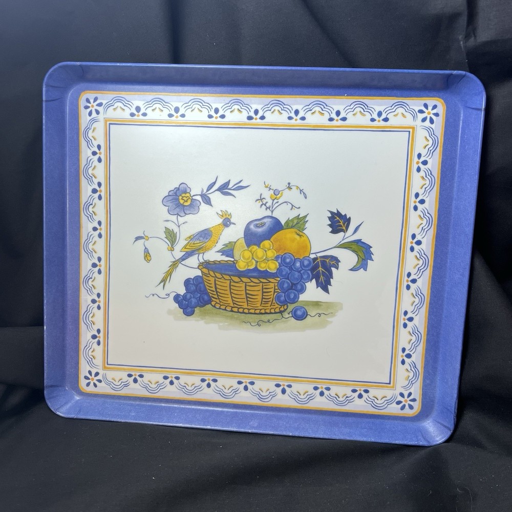 Design Imports Blue Yellow Tray w/ Fruit Basket Bird Melamine Made in Italy Good, used condition with no chips, cracks, or discolorations. This tray has surface usage scratches as well as scuffs on edges, along with a dark speck as shown in photos. Still displays nicely. Appx. 12-1/4” long x 10-1/2” wide. Insured shipping options available at checkout. I’m always glad to combine purchases to reduce total shipping costs. Please request a combined invoice if purchasing multiple items. Thanks for your interest!