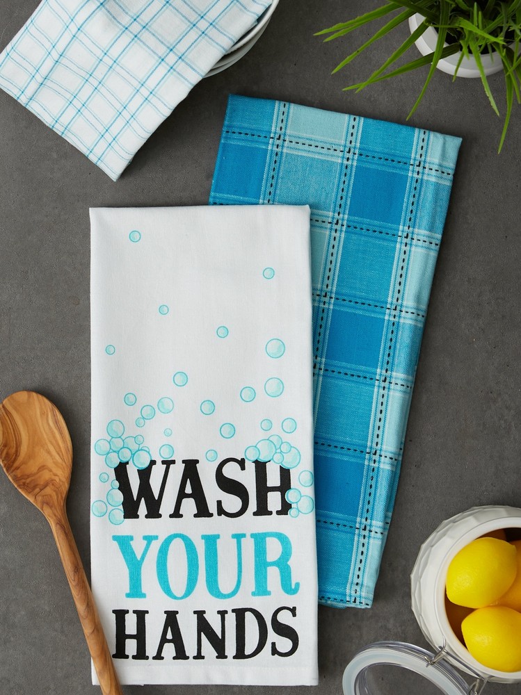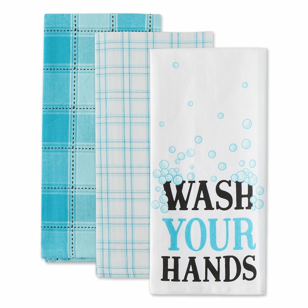 Each set includes 3 dishtowels measuring 18x28 inches with fun designs 100 Percent cotton, machine washable. Wash with cold water on gentle cycle and tumble dry low. Do not bleach them or run them thr...