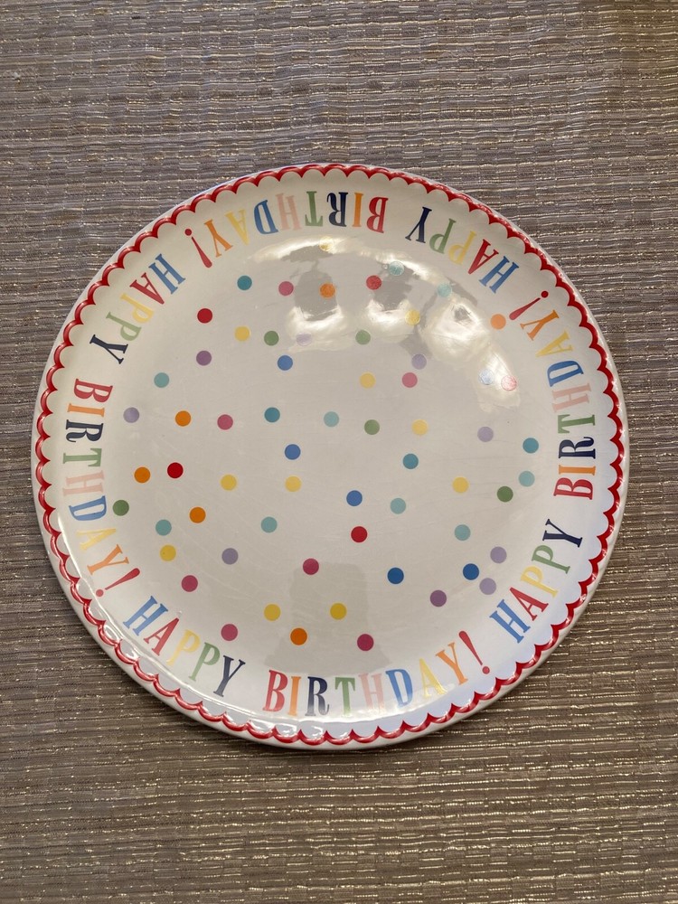 Design Imports Cake Plate, Happy Birthday is a vibrant and sturdy ceramic plate designed to elevate your cake presentation. The shiny finish and colorful palette make for a delightful display that's sure to impress at any birthday celebration. Crafted with care, this plate seamlessly combines functionality with a festive touch, ensuring your cake takes center stage at your next special occasion.