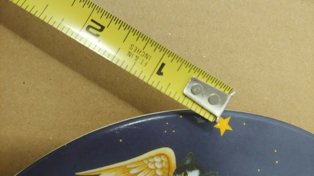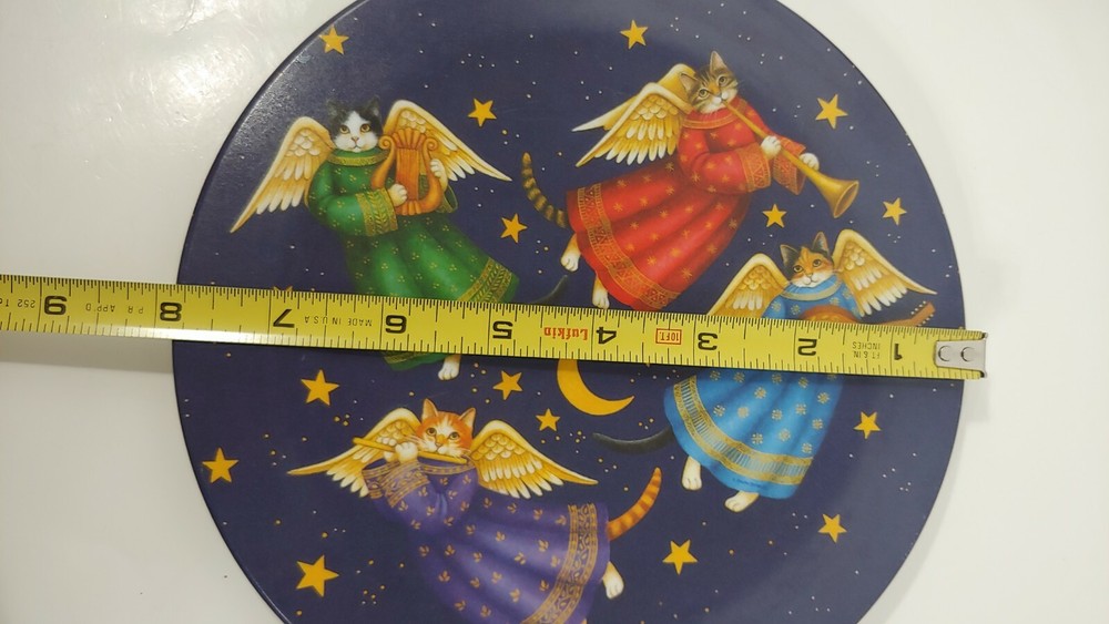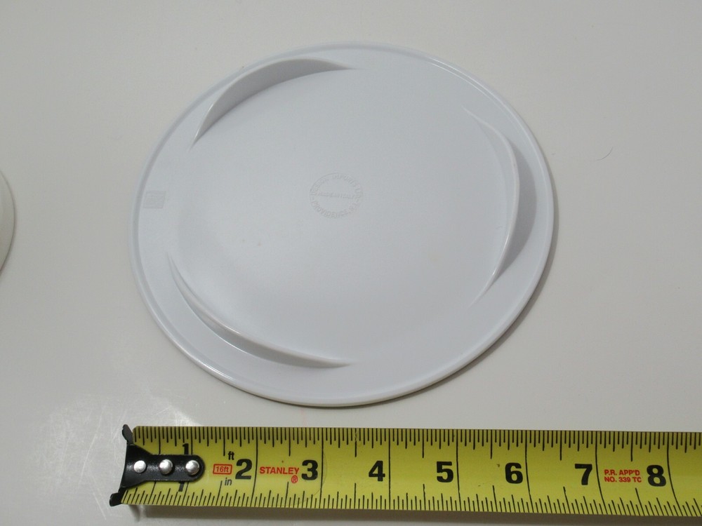Plate measurement is shown in the photo. There are some slight scuffs, scratches, and one small lighter area, shown in photos. I am not sure if the finish is scuffed or what exactly that is. Smoke free home