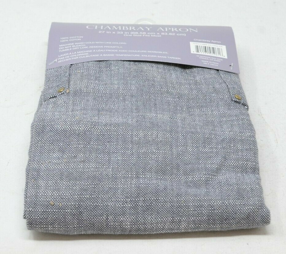 Designed to protect your clothes from grease and splatters, the Chambray Chef Apron from Design Imports is made of soft, yet exceptionally sturdy cotton. A wide pocket holds utensils, recipe card, seasoning, all the essentials you use most. Soft chambray is a stylish way to protect your clothes Extra-wide front pocket Adjustable neck strap Long back straps 100% cotton chambray Measures 32" W at hem x 28" L One size fits most Machine wash Imported skuId : 64455778