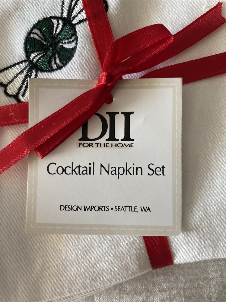 Design Imports Cocktail Napkin set of 8 Green Peppermint candy NWT.