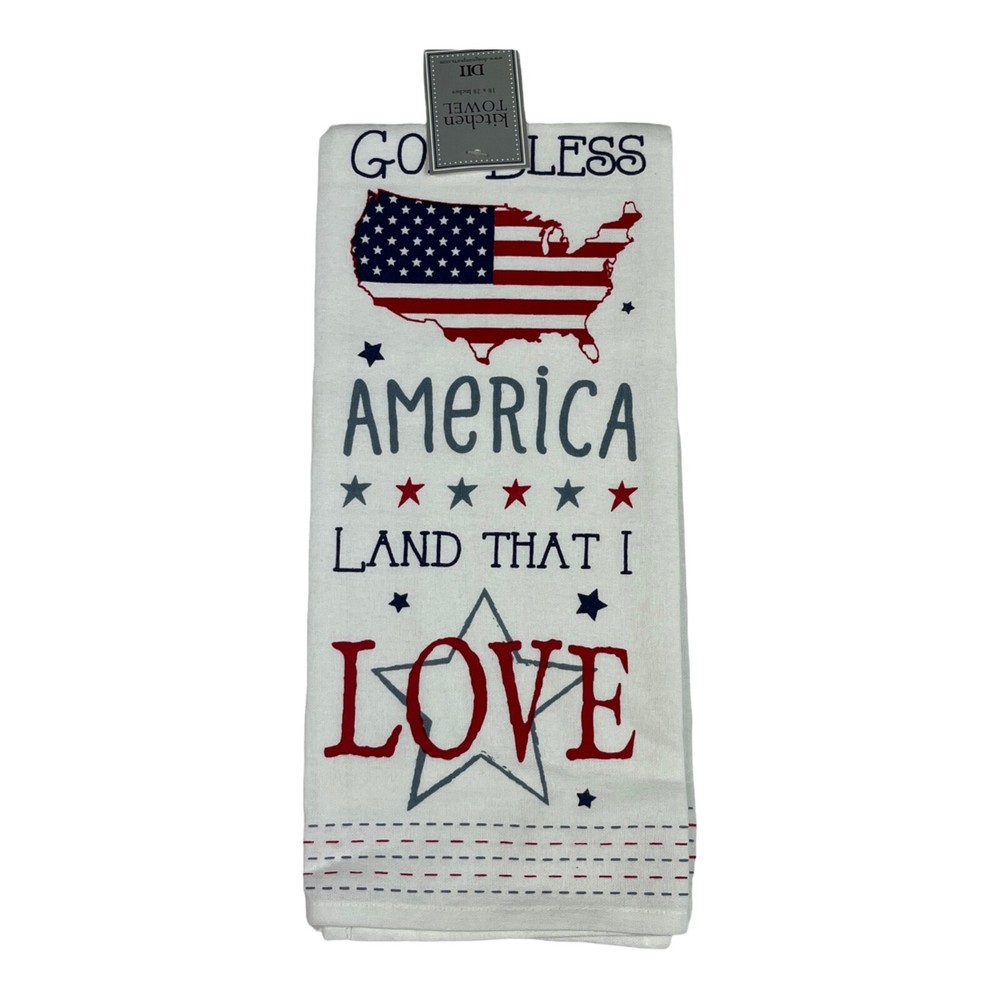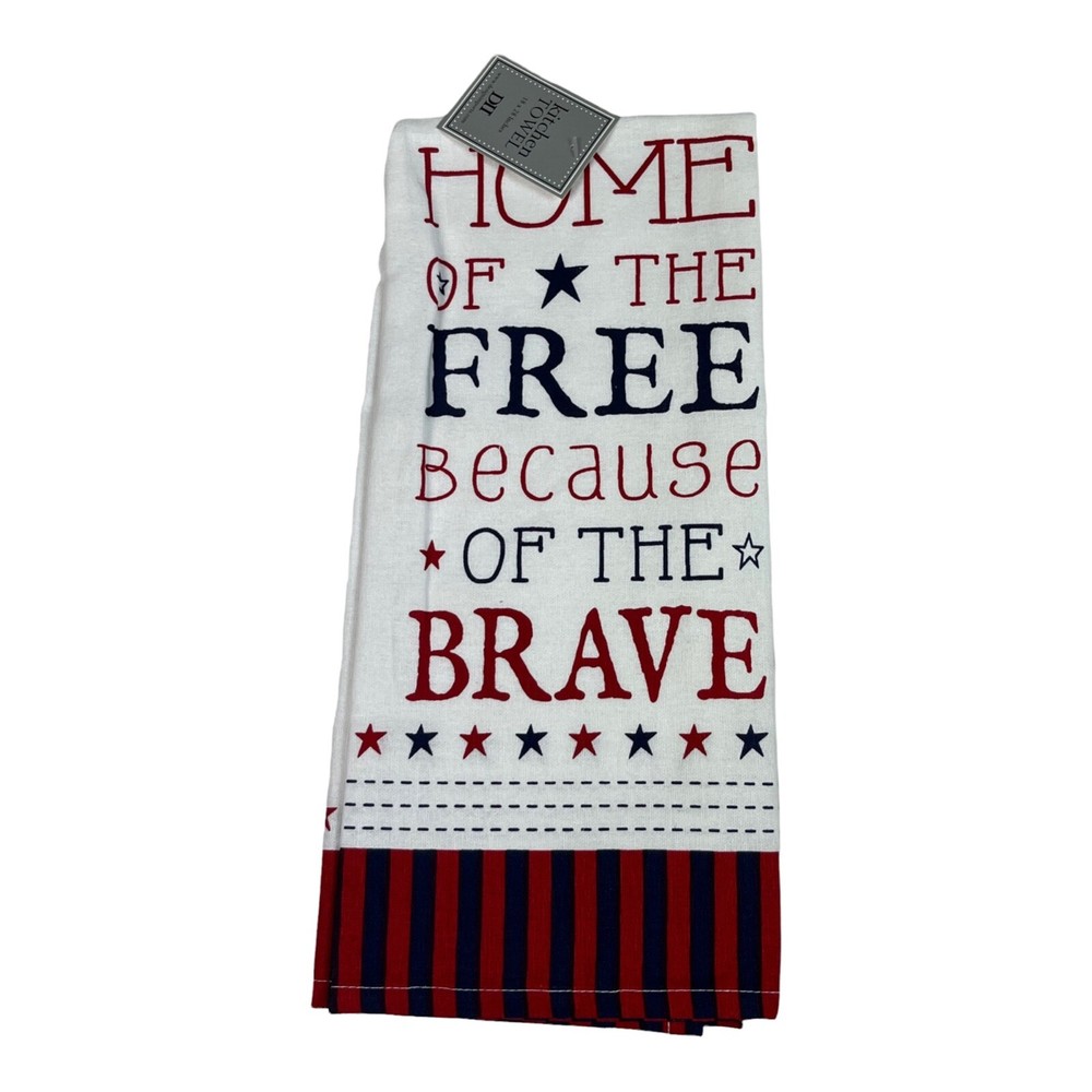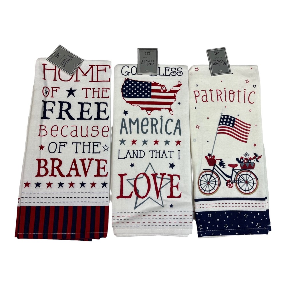 - Design Imports Americana Patriotic Dishtowel set of 3 - includes 3 dishtowels with the following sayings "God Bless America Land That I Love", "Home of the Free Because of the Brave", and "Patriotic" - Each towel measures 18" x 28" - Made of 100% Cotton.
