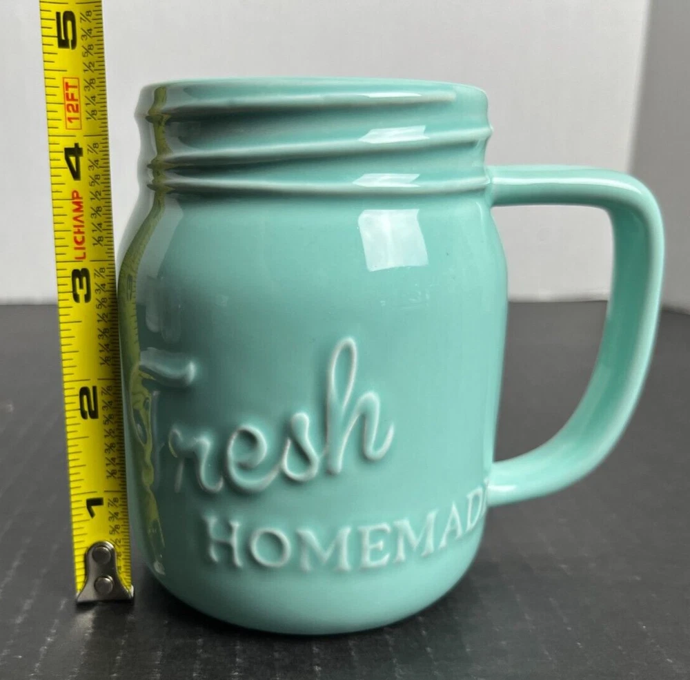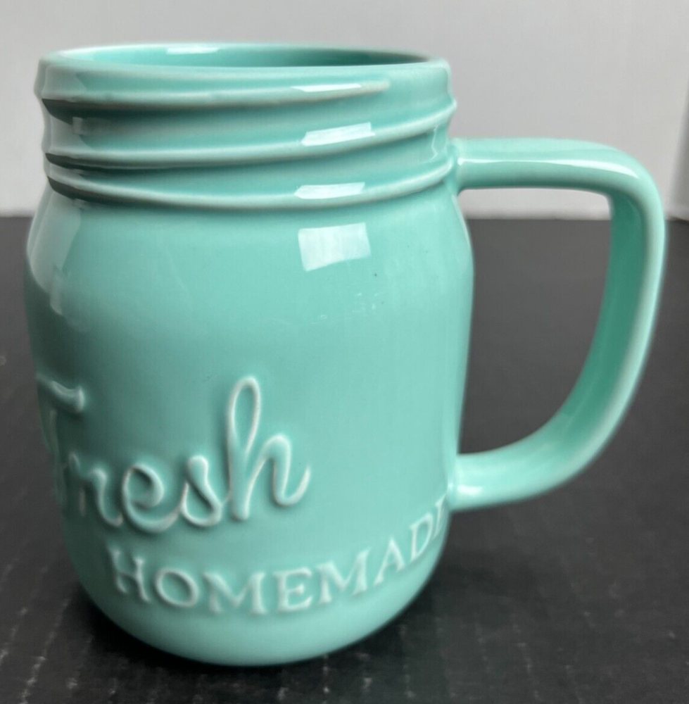 Design Imports DII Coffee Mug "Fresh Homemade" Ceramic Teal Cup Jar...