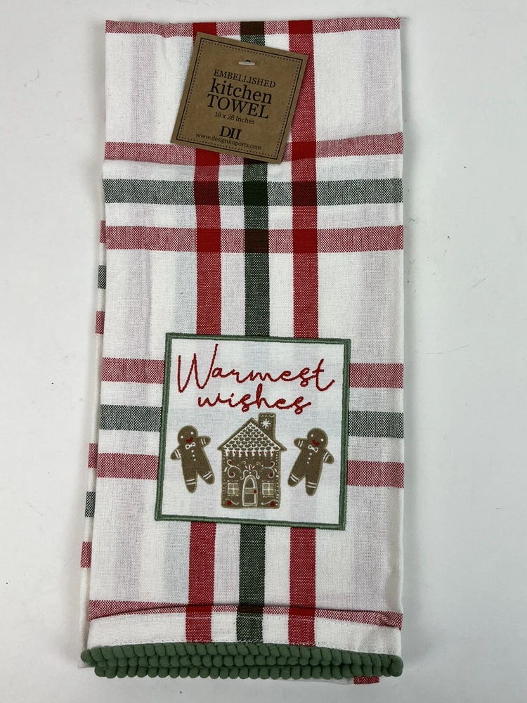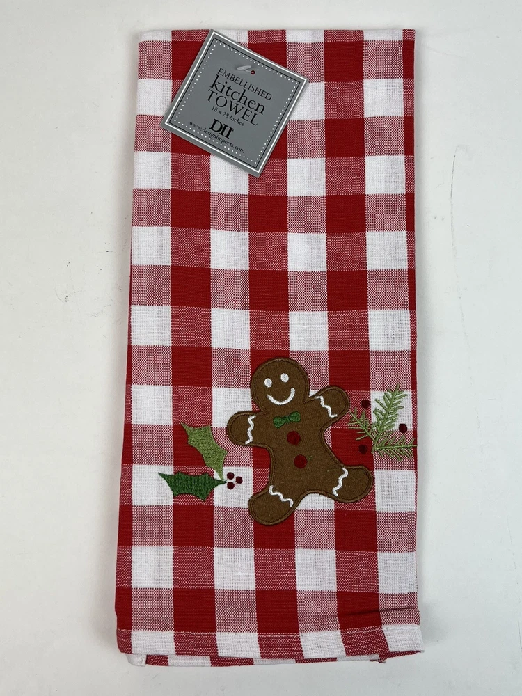 - Design Imports Gingerbread Man Warmest Wishes Red Plaid Gingham Christmas Holiday Dishtowel Set of 2 - Brand new with tags - Each towel measures 18" x 28"