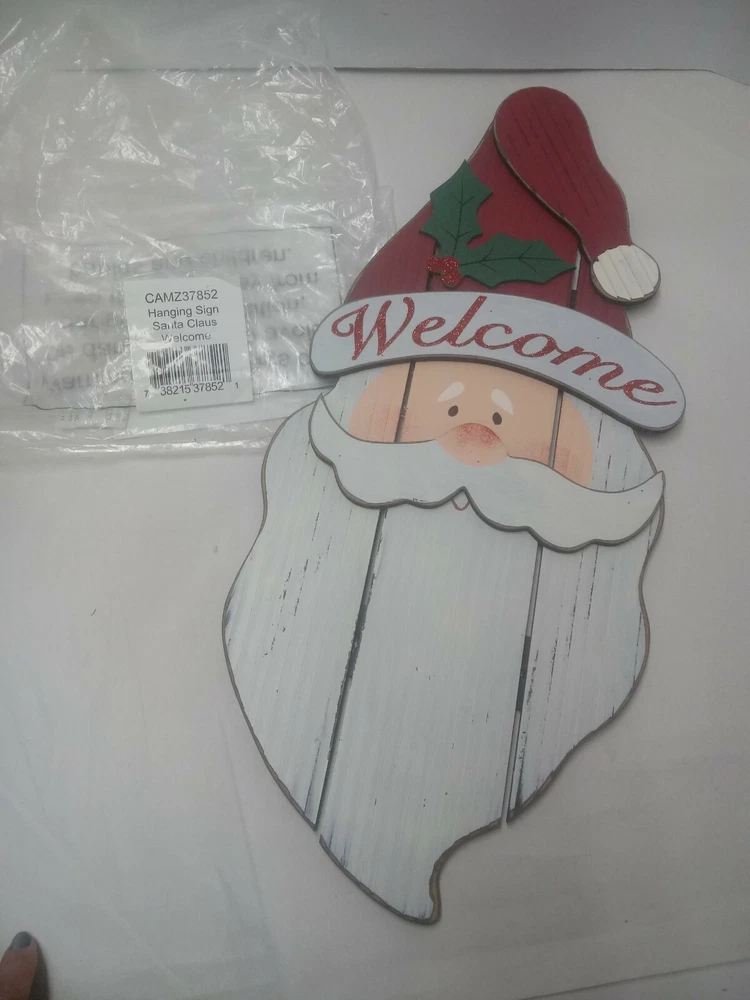 Design Imports DII Santa Claus Welcome Wooden Indoor/Outdoor Hanging Sign This Sign Measures 20" Long x 11" Wide and is a perfect addition to any home for the holiday season This Sign Is perfect for Indoors or Outdoors add "Welcome" to your door with this cute Santa Sign Check Out My Other Christmas Décor Items Such as Tabletop Trees and More... This Item Was Factory Sealed Until Opened BY ME For Photos and Inspection Common questions & Answers PLEASE BE SURE TO VIEW ALL PHOTOS FOR INCLUDED ITEMS(NOT JUST STOCK PHOTO) PLEASE FULLY UNDERSTAND THE ITEM YOU ARE PURCHASING OR FEEL FREE TO ASK ANY QUESTIONS YOU MAY HAVE(WE RESPOND AS QUICKLY AS POSSIBLE) THANK YOU !!! Brand... Design Imports Model... CAMZ37852 Color.... Red/White Size...20x11" Item Condition...New Open box...Yes, Was Factory Sealed Until Opened BY ME For Photos and Inspection Factory Sealed... WAs Until Opened BY ME For Photos and Inspection Damage....NO Original Packaging.... Yes Complete... Yes Tested...NO We do combined shipping based off a USPS calculator with measurements & weight, If you are interested in purchasing multiple items, please feel free to message & get a more accurate quote. Shipping: Most of our Items ship within 1-3 Business Days (Weekends & Holidays not included) Posted domestic shipping/handling rates, as well as “free shipping” offers are apply only to the contiguous 48 United States only; military addresses, and other US territories are exempt from free shipping offers, unless otherwise specifically stated. Contact us for a shipping quote if there is no shipping rate posted for your location. Saturday, Sunday, and national holidays are not business days and are not included in our estimated shipping times. Please provide us with a current contact telephone number, so that we may contact you if any issues arise in the shipping process that may require your attention. PLEASE READ........ Please double check your address when you are checking out, If you have moved, update the address before paying. We cannot change your shipping address after checkout. Do not email us asking to change your address as this is against PayPal Fraud Prevention Rules. You are responsible for the address you provide at the time you order. If you give us the wrong address , you will be responsible for the loss of the item and or shipping costs. When printing your shipping label, if the shipping carrier generates a problem with your shipping address the purchase must be cancelled due to shipping address. Free shipping includes lowest cost standard shipping chosen by seller