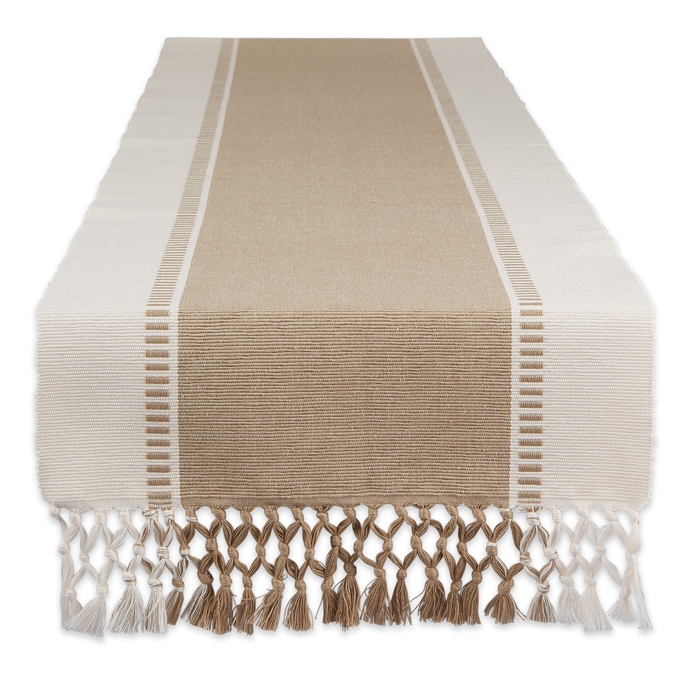 View More Design Imports Items Design Imports Dobby Stripe Table Runner, 13″ x 108″, Beige We offer a full collection of trend-based designs for all seasons. Incorporating the hottest colors and themes, brings you a fresh, innovative line of kitchen products, tabletop, gifts, and home decor for every season, every holiday and everyone. We have a wonderful selection of holiday and everyday table runners available. Our table runners provide a great place to set down platters and to prevent spills and scratches on your tabletop while adding style and flair. Set plants or other centerpieces atop the runner to update any space with a fresh new look. The stylish and simple design will blend in with any decor in your home or kitchen. You can trust us when selecting functional, stylish and affordable home accessories. Let our products become a valuable part of your life. Measures 13x108 inches with 3 inch decorative fringe, appropriate for a table that can seat 8-10 people. Cotton fabric, machine washable, gentle cycle, tumble dry low. Low iron if needed. Fringe welcomes charm and texture to your tabletop while the runner protects from scratches and spills. Shipping Details Payment Information Customer Service Shipping Cost We generally ship FREE in USA, otherwise please look item shipping info. For international buyers we welcome combining. Delivery Time We generally ship same business day, expedite shipping if otherwise stated. International Buyers Import duties, taxes, and charges are not included in the item price or shipping cost. These charges are the buyer's responsibility. Please check with your country's customs office to determine what these additional costs will be prior to bidding or buying. We accept the PayPal Please contact us if you have any questions. Product Information Feel free to ask for more photos & info Product photos are assumed to be part of the description. Contact Information You can contact us anytime before & after purchase We wil reply your message in 24h. FAST'N FREE shipping to USA EASY RETURNS in 30 days 100% AUTHENTIC large inventory 100% CUSTOMER satisfaction guarantee Private Sellers Network Our aim is; To serve best products of famous brands with reasonable prices to our customers. All our products are authentic. Please take a look our other merchandise and follow us. "Your happiness is our joy..." Visit Store Sign Up for Newsletter View Reviews
