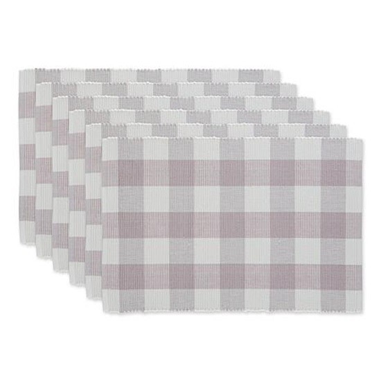 Design Imports Buffalo Check Placemats 6-pack dusty lilac (6) Buffalo Check Placemats Each measures approx. 13"x19" 100% cotton Placemats are ribbed and feature a hand loomed appearance The ribbed design adds texture and depth to your table and works any time of the year Two sides are hemmed and two sides are selvedge Machine wash colors separately • Cold water • Gentle cycle • Lay flat to dry Imported