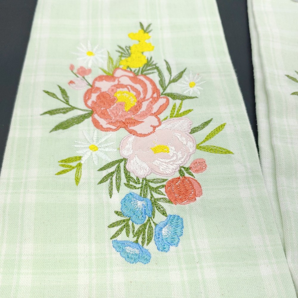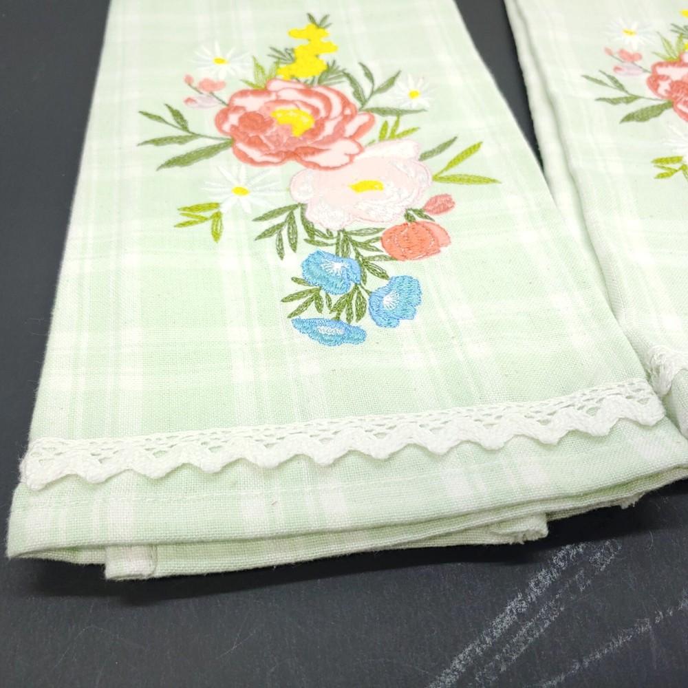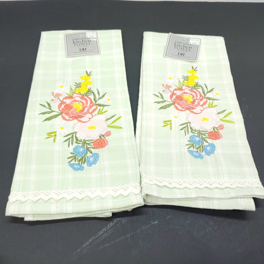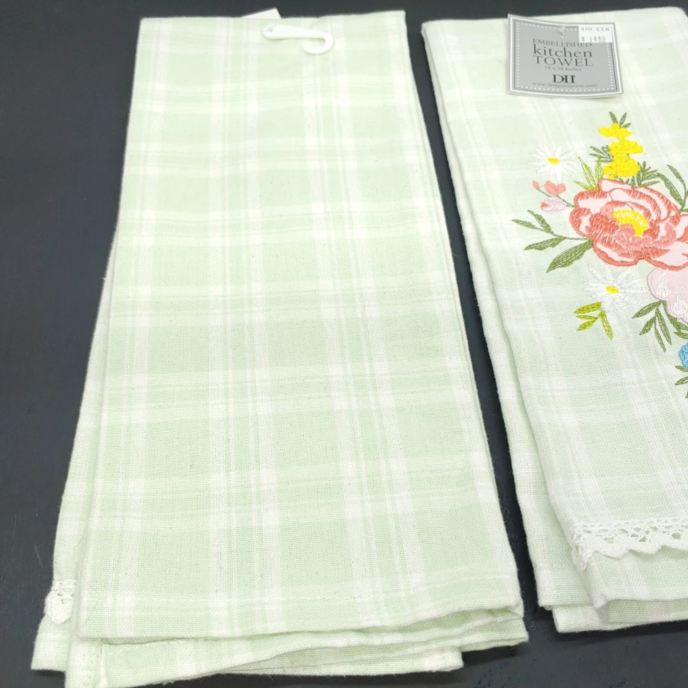 Design Imports Embellished Kitchen Towel Embroidered Flowers 18x28 inches Light Green Plaid Thanks for looking and possibly supporting my small business and my family. Hope your day is great!