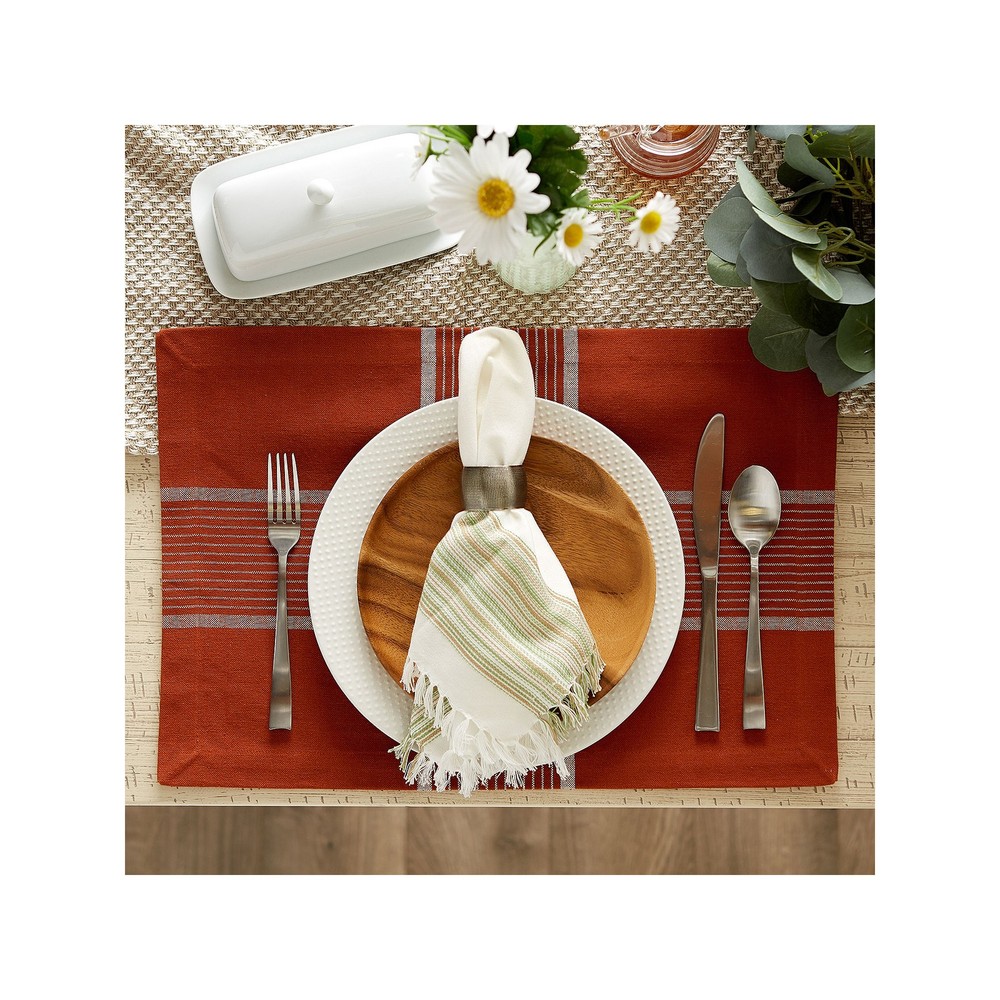 Design Imports Fiesta Rust Check 6-Pc. Placemats - FIESTA RUST ONE SIZE Design Imports, Fiesta Rust Check 6-Pc. Placemats - FIESTA RUST ONE SIZE Like New Fully Functional Like New - Inventory is in Like New & Fully Functional condition however the product may have been taken out of the packaging and tested or the outer packaging may show little signs of scuffs, dents or may have also been repackaged. Please note that Major Appliances may have sustained minor or major blemishes/dents either on the front of the appliance or sides. These products are fully warranted and are 100% brand new and guaranteed to be defect-free upon delivery. UPC: 072456123039 Weight: 0.75 lbs Dimensions: 13.00 x 10.00 x 1.50 in 90-Day Warranty A 90-day Warranty is included for free with every product on VIPOUTLET. Yup, we are confident in our refurbishment. Product Description DII offers a full collection of trend-based designs for all seasons. Incorporating the hottest colors and themes, DII brings you a fresh, innovative line of kitchen products, tabletop, gifts, and home decor for every season, every holiday and everyone. These placemats are a great basic to dress up into a formal meal, or for something casual. Easily adds texture and visual interest to any table. DII offers delightful Kitchen Linens including dishtowels, dish cloths, aprons, potholders, and oven mitts. You can trust DII when selecting functional, stylish, and affordable home accessories. Let DII products become a valuable part of your life. Cotton placemats measure 13x19 inches each. Placemat set is easy to care for, simply throw in the wash to clean and lay flat to dry. With a large variety of color options these can be mixed, matched, and swapped out depending on the season. Entertain guests and serve a big meal with all the fixings on our placemats year after year. These placemats are a great basic to dress up into a formal meal or for something casual. Easily adds texture and interest to any table. DII offers delightful home and kitchen products including charming napkin rings, placemats, and tablecloths. # Pieces In Set: 6 Included: 6 Placemat(s) Place Setting: Service for 6 Shape: Rectangle Use: Indoor Measurements: 13 Width/Inches Base Material: 100% Cotton Fabric Description: Lace Care: Machine Wash Decor Styles: Rustic, Farmhouse Country of Origin: Imported 90-Day Warranty Free Shipping Both Ways 65 Point Inspection All our devices undergo a rigorous 65-point physical and technical examination to ensure that we can deliver the highest quality to our customers. 25+ Years experience As an industry leader in product sourcing and reconditioning, we are expert in providing the best and finest quality products. US Seller/US Sourced All our products are sourced from the USA. 100% Functional We grade over 10 million devices each month and only the ones that pass our rigorous quality control with a score of 100% approval are released for the retail market. Why Choose Us? Payment Policy Shipping Policy Warranty Return Policy FAQ Why Choose Us? VIPOUTLET was established to provide consumers the opportunity to benefit from amazing deals on: new, over-stocked, open-box, and refurbished products from the nations largest retailers and manufacturers. Retailers and manufacturers provide products directly to VIPOUTLET to leverage our extensive remarketing channels. Sealed product is instantly made available to you for immediate purchase. If products arrive as open box VIPOUTLET refurbishes products to ensure they function according to the original manufacture's specifications. VIPOUTLET is North America's largest refurbisher of Retailers/Manufactures product backing our work with a 90-day warranty to ensure a great user experience. Every single item we sell goes through thorough inspection processes to make sure it works perfectly. Payment Policy For your safety and convenience, we process all payments through PayPal where all major Credit Cards are accepted (Amex, Visa, MasterCard, Discover, etc.). We unfortunately cannot accept payments from accounts located outside of the US and Canada. For "Buy It Now" listings, your PayPal payment is due at the time of checkout. For auction style listings, your PayPal payment is due within 48 hours after the end of the auction. Shipping Policy Ground Shipping is always Free within the US (48 contiguous states)! Your order will be processed by one of our 6 fulfillment warehouses as soon as we receive it. We do our best to ship it out within 24-48 business hours of receiving your order and provide tracking numbers on all orders. Please note that we can only ship to addresses verified with PayPal or your credit card. We may contact you for additional verification if needed. We cannot ship to APO or FPO addresses, and orders to Puerto Rico, Hawaii, and Alaska will incur additional shipping charges. All order over $100 will require an adult signature. Warranty 90-Day Warranty on all our products. We proudly stand behind the quality of our products. If the device you purchased is found to be defective or experience a problem, we will be happy to provide a replacement if available upon the item's return within 90 days of your receiving delivery. If you need to return a defective device, please contact us through eBay messaging before shipping the return so we may initiate the RMA. Once the item has been received and verified, a replacement will be sent out free of charge. Should the same model no longer be available we will either offer a replacement of similar or better value or full refund. Our warranty policy is void if you attempt to modify, open, unlock, root, or change the operating system of the device, and does not cover damages caused by buyer neglect or abuse. Return Policy Hassle Free Returns! All our products come with a 30-Day Free Return Policy. If you would like to return your item and you are within 30 days of the purchase, and it is still in its original condition, you can request a return label and ret