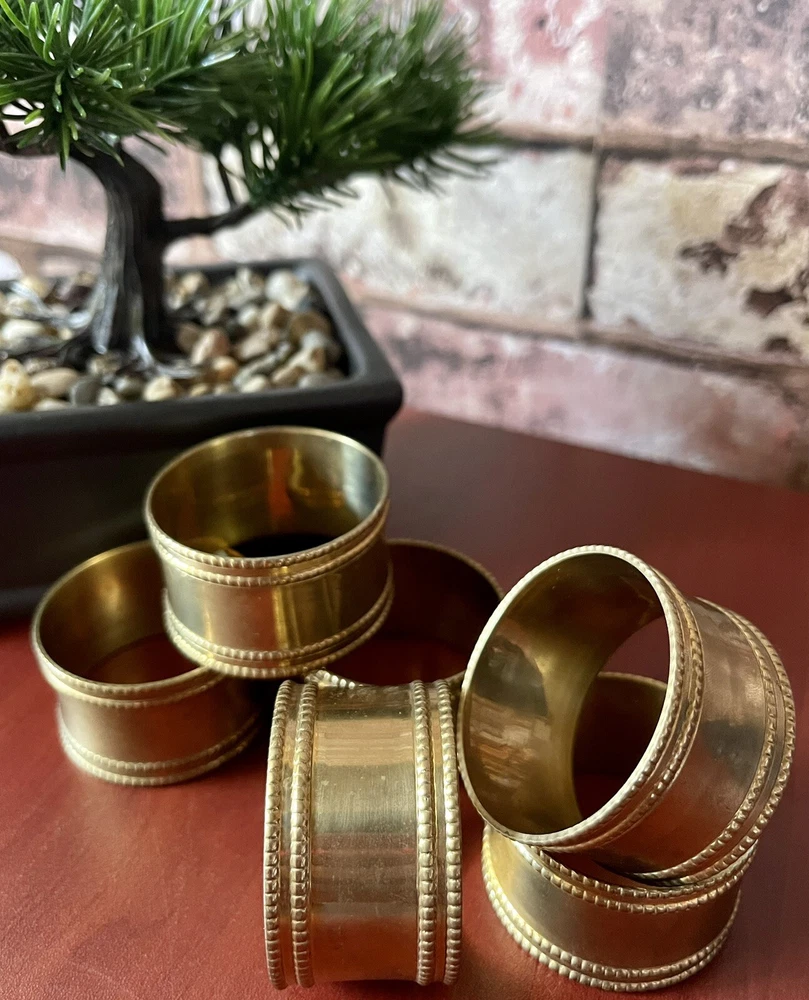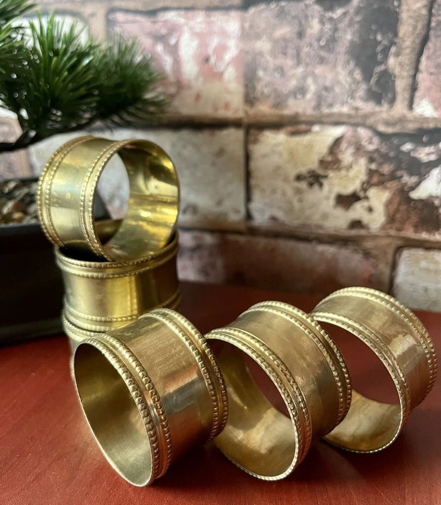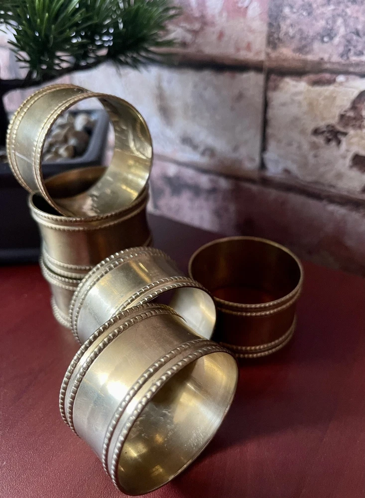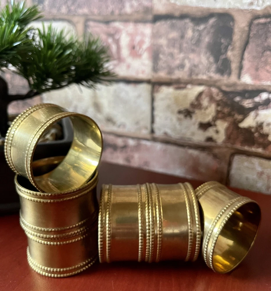 Design Imports Gold Band Napkin Ring Set Of 6. Accent your classic dining room decor and dress your place settings with the Design Imports gold band napkin rings. The antique gold color finish of the gold band napkin ring beautifully complements classic and antique serveware and decor. The 4.5cm diameter Design Imports gold band napkin ring fits all types and sized napkins and promotes antique decor with elegant style. Design Imports Gold Band Napkin Ring Features: Traditional knurling facets coordinate with other antique decor Antique gold finish Pairs well with classic silver decorations
