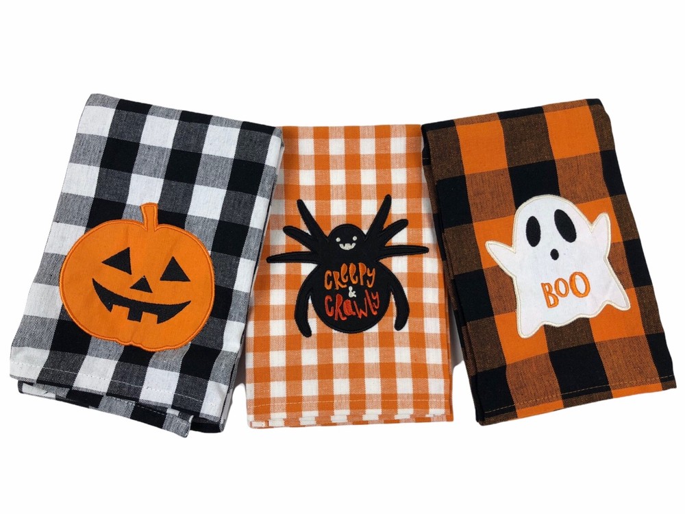 - Design Imports Halloween Embellished Dishtowel Set of 3 - Brand new with tags - Each towel measures 18" x 28" - Made of 100% Cotton