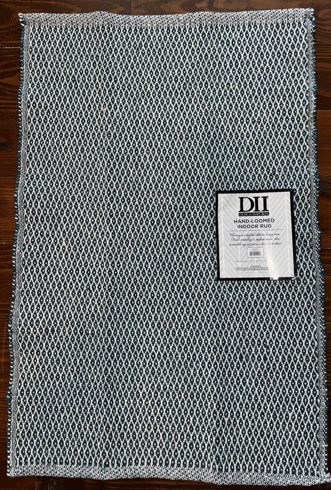 Add a touch of elegance to your living space with this stunning Design Imports Hand-Loomed Indoor Rug. The rug features a beautiful blue and white color scheme that is sure to complement any interior decor. Measuring 36 inches in length and 24 inches in width, this area rug is perfect for adding a cozy touch to any room in your home. Crafted using recycled materials and a hand-loomed production technique, this rug is not only stylish but also durable and long-lasting. The reversible design of the rug gives you the flexibility to switch up your space whenever you desire. Perfect for those who appreciate area rugs, this Design Imports rug is a must-have for any home.