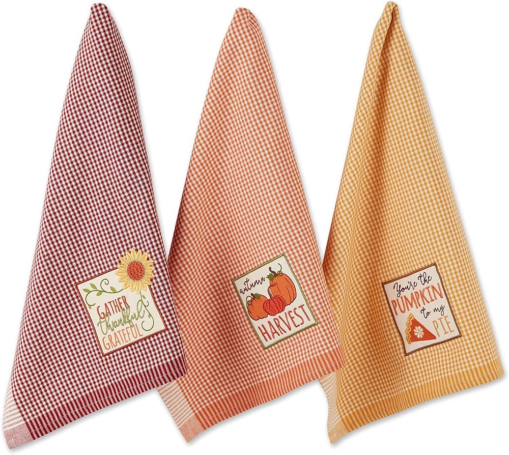 - Design Imports Autumn Harvest Pumpkin Spice Embellished Dishtowel Set of 3 - Brand new with tags - Made of 100% Cotton - Includes 3 towels with the following sayings "You're the pumpkin to my pie", "Autumn Harvest" and "Gather Thankful Blessed" - Each towel measures 18" x 28"