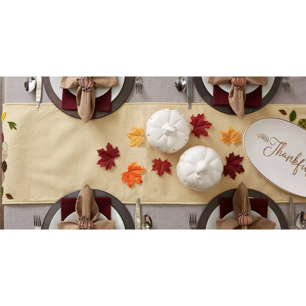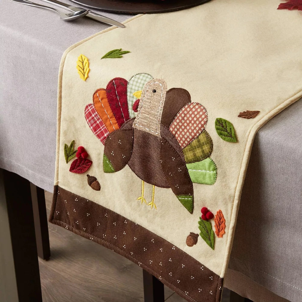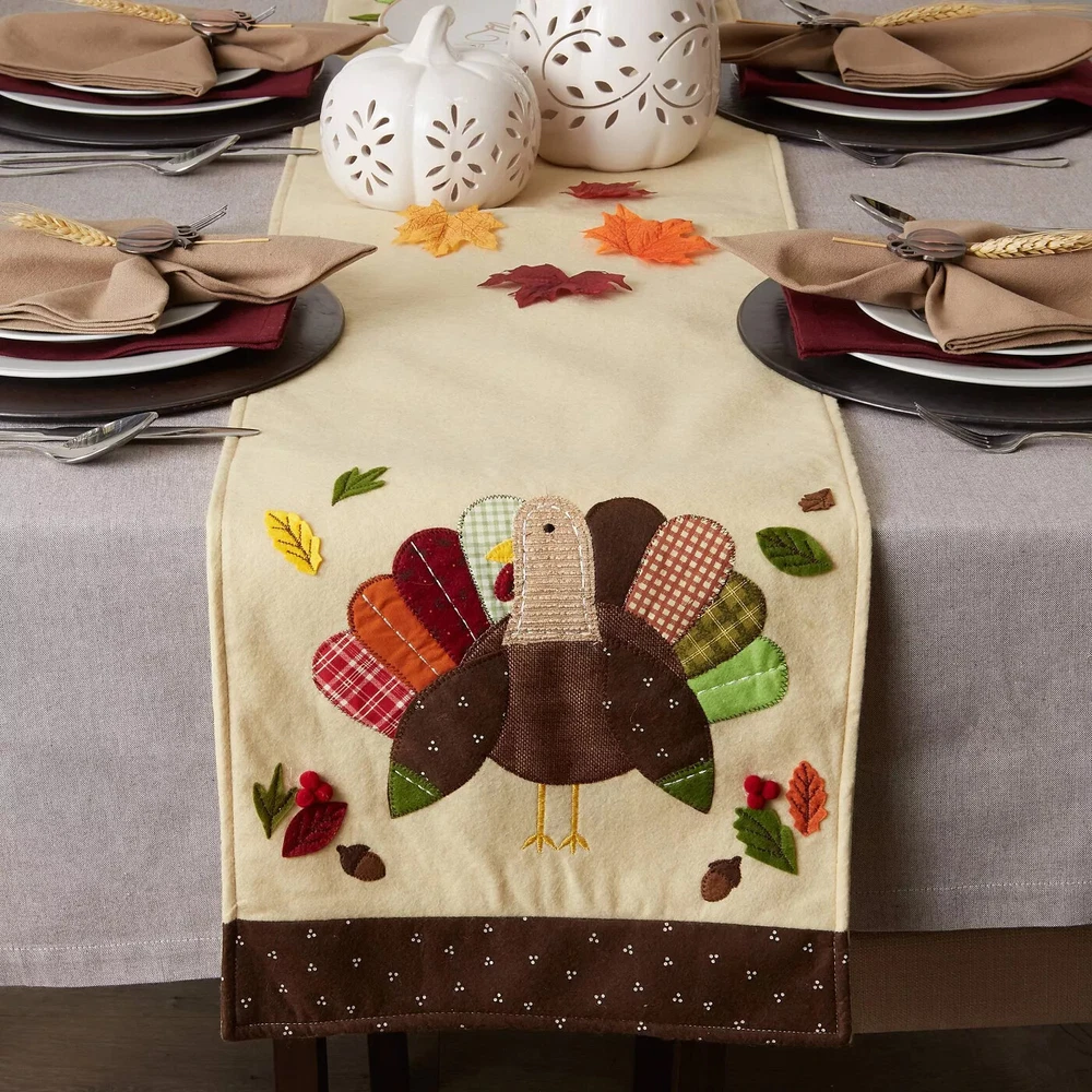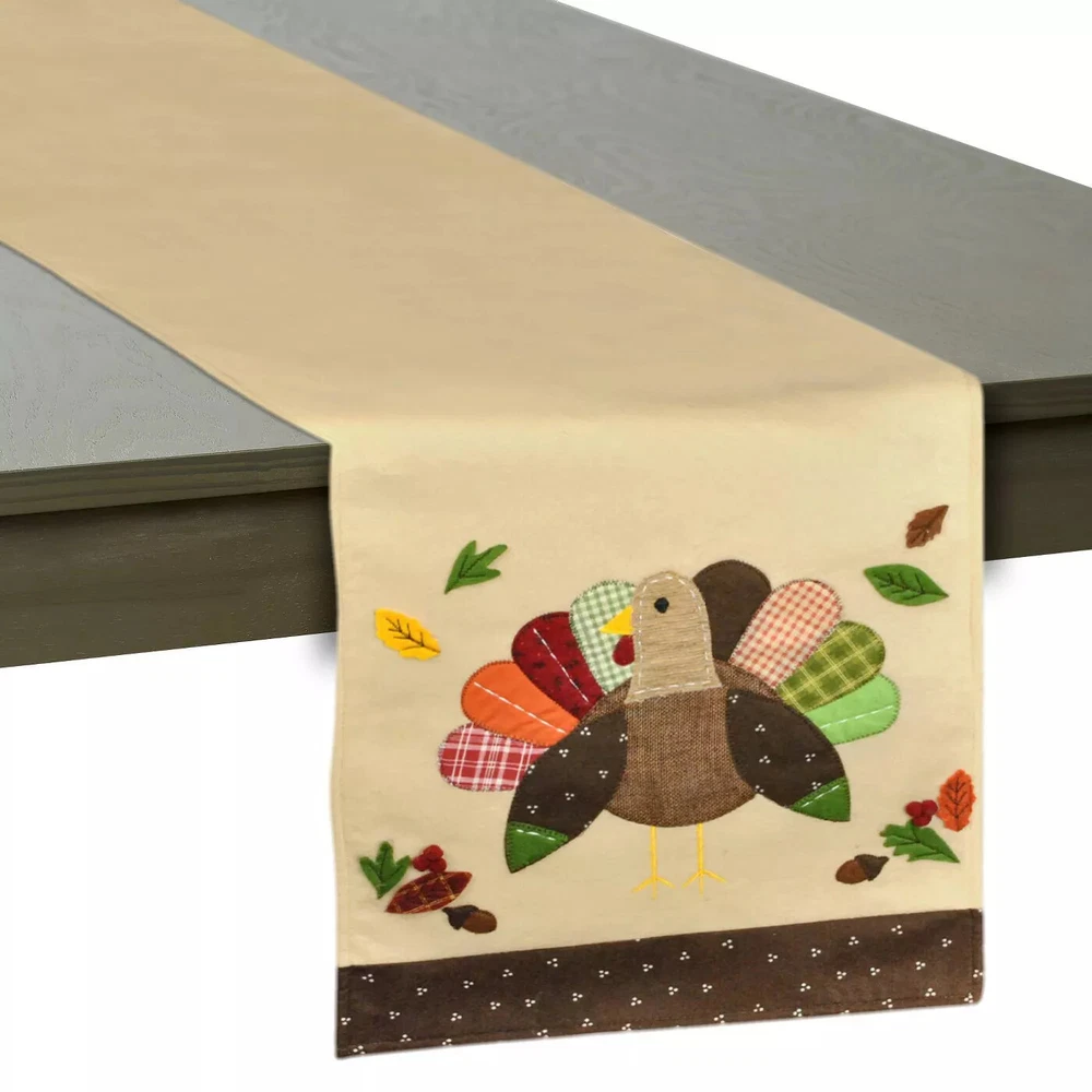 Design Imports Home Dining Table Accessories Turkey Table Runner - Embellished New! Fast and free shipping!! Thank you!!! Description Add some decorative flare to your table with this embellished table runner. Sweet embroidered turkey design. Made of a luxurious 100% cotton material. Hand wash only, hang dry. Measures approximately 14 x 64 inches. Perfect as a gift of self purchase item.
