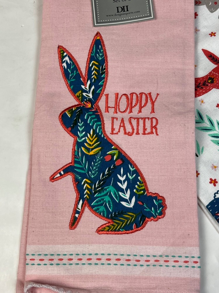 - Design Imports Hoppy Easter Spring Holiday Dishtowel Set of 2 - Brand new with tags - Each towel is made of 100% Cotton and measures 18" x 28"