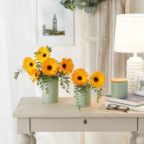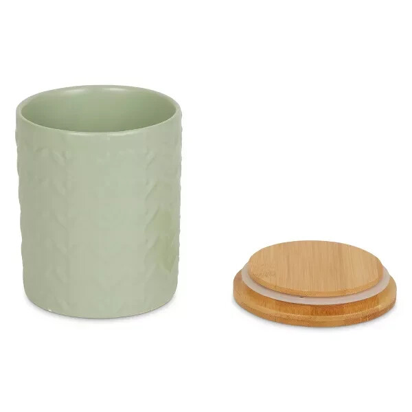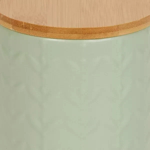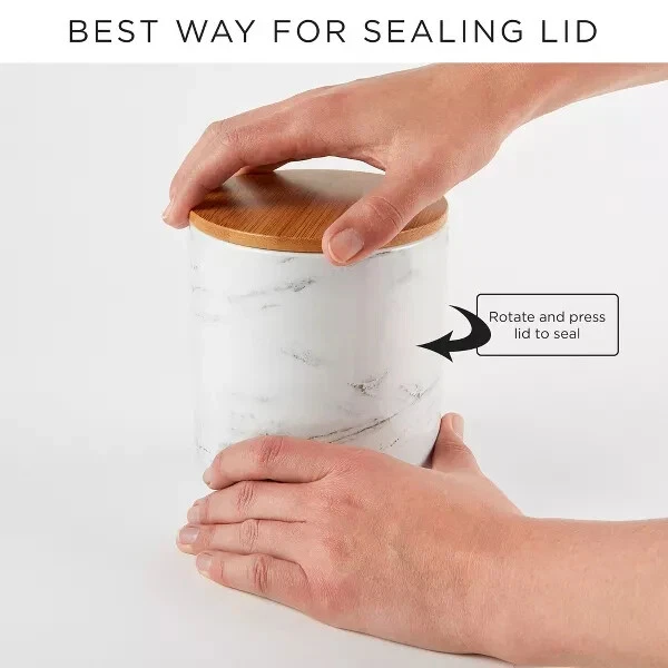 SIMPLE, SOPHISTICATED, FUNCTIONAL: Set includes 2 canisters with bamboo lids; Small measures 3.6x3.6x5.2" and holds 3.25 cups; Large measures 4.3x4.3x7.1" and holds 5.75 cups INSTRUCTIONS: To seal lid effectively, press firmly down then rotate at least a quarter turn. Lids are not airtight MATERIAL AND CARE: Heavy duty ceramics are dishwasher safe; For the bamboo lids, simply remove the silicone attached along the lid, hand wash with soap and rinse with water; Wrap the silicone around the lid again and seal back up to use again STYLE & VERSATILITY: Whether giving as a gift or using in your own home, these containers will surely add charm to any kitchen and bring compliments from guests Enhance your kitchen storage with our versatile container set. Designed with heavy-duty ceramics, these containers are dishwasher safe, ensuring easy cleaning. The bamboo lids, featuring a silicone seal, add a touch of style. To seal effectively, press down firmly and rotate at least a quarter turn. Note that the lids are not airtight. For care, hand wash the bamboo lids, remove the attached silicone, rinse, and reseal. Whether for gifting or personal use, these containers add charm to any kitchen, earning compliments from guests.