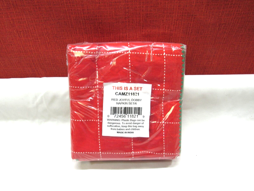 Design Imports Joyful Dobby , Napkin Set, 6 Piece Red T4104034 Small accents, like our cloth napkins, provide a subtle and sophisticated impact to your dining display. From classic to contemporary, the perfect complement to any decor. Set of 6 oversized dining napkins measuring 20x20 inches. Cotton fabric, Machine wash cold, gentle cycle, tumble dry low. Low iron when needed