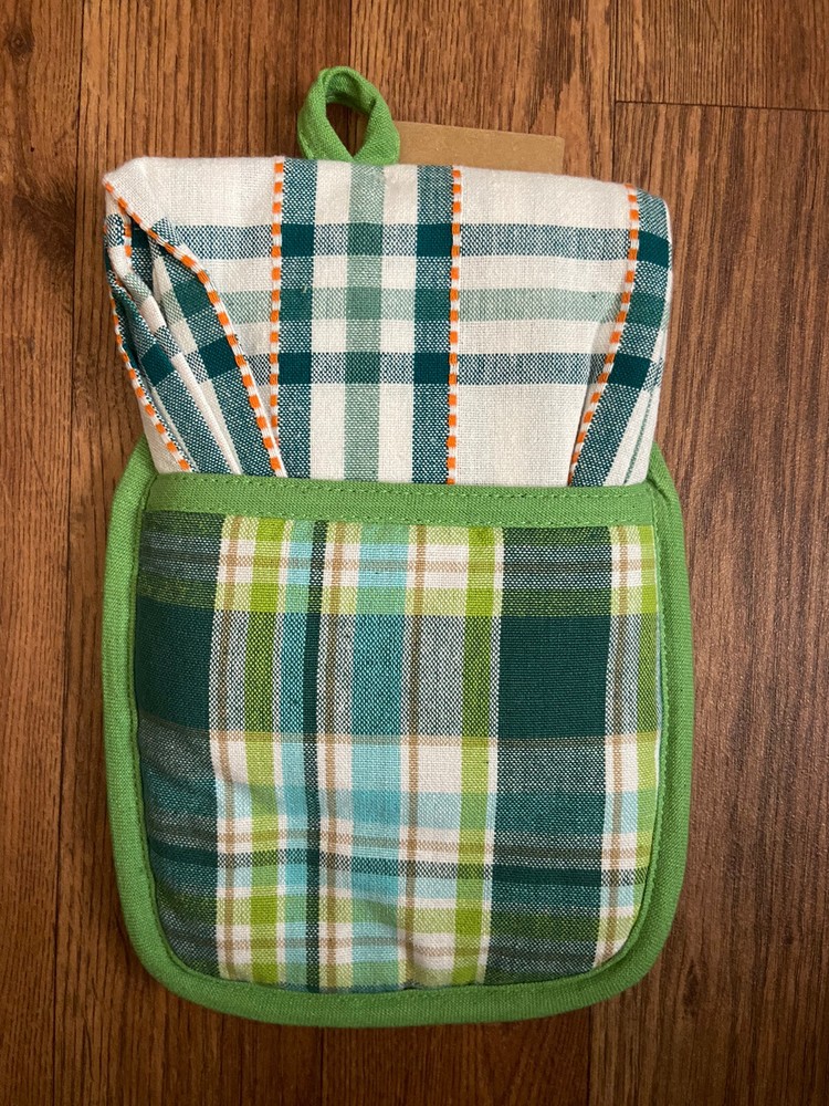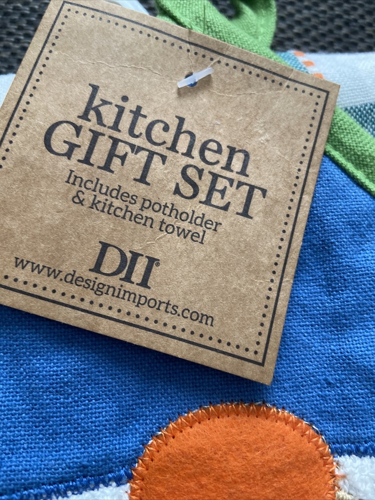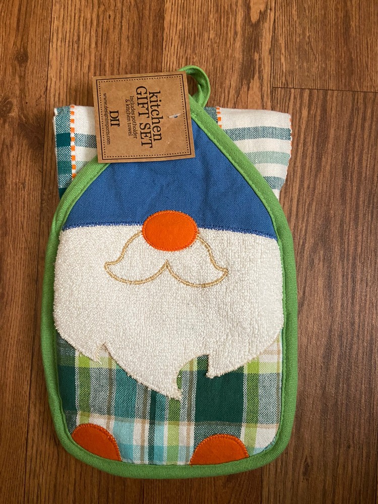 Design Imports Kitchen Gift Set Gnomes theme NWT Great gift for housewarming. This lovely kitchen gift set from Design Imports is perfect for anyone who loves to cook and wants to add a touch of whimsy to their kitchen decor. The set includes an oven mitt and a potholder, both featuring a charming gnome design in blue. Made from high-quality cotton, these kitchen accessories are not only cute but also durable and practical. The Design Imports Kitchen Gift Set Gnome is ideal for a housewarming gift or simply as a treat for yourself. Whether you're baking a pie or cooking a roast, these oven mitts and potholders will protect your hands and make your kitchen look stylish at the same time. Get yours today and add some fun to your cooking routine!