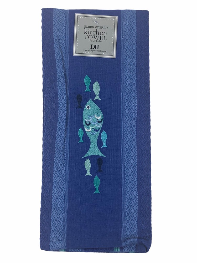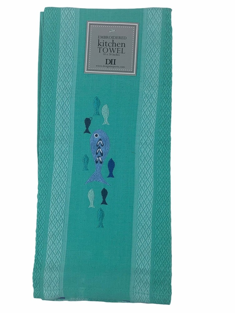 - Design Imports DII Lagoon Blue Fish Embellished Dishtowel Set of 2 - Each towel measures 18" x 28" - Made of 100% Cotton