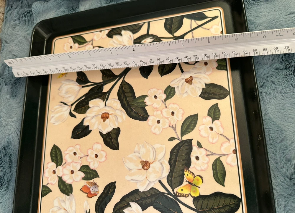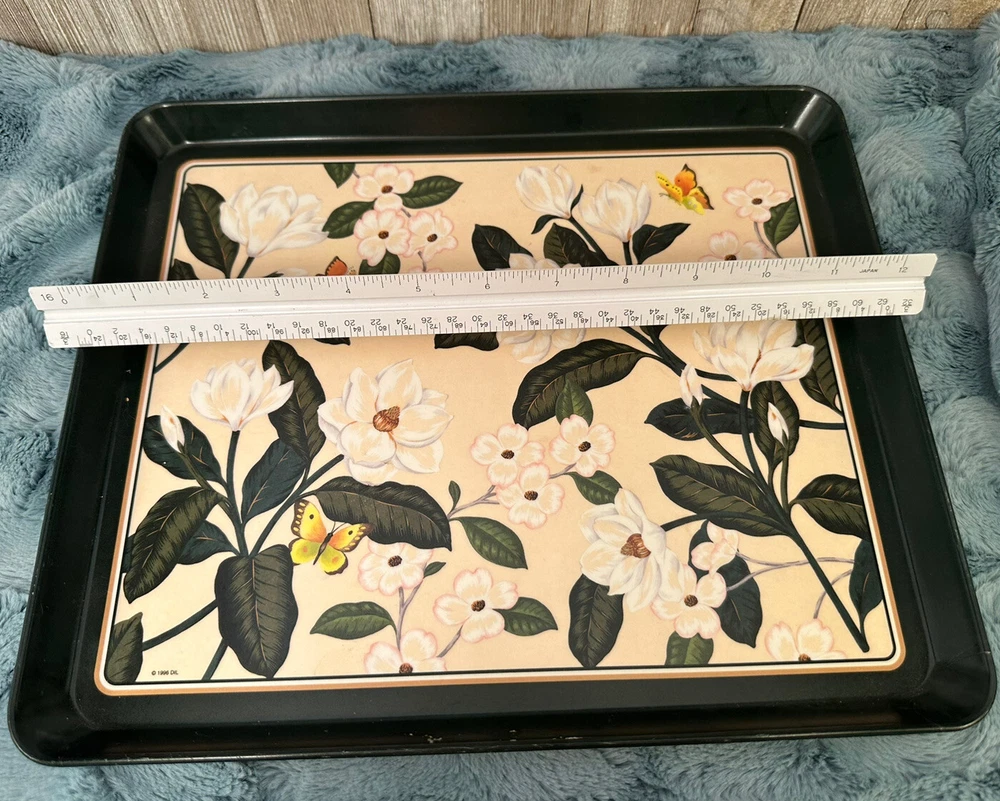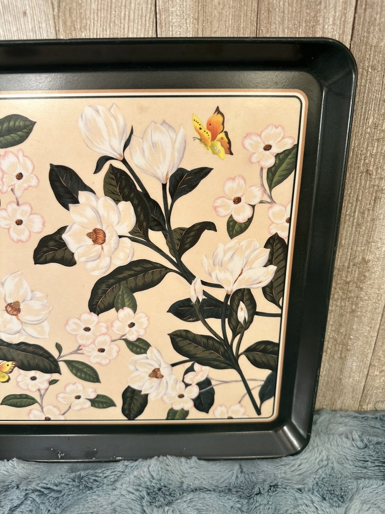 Design Imports, Ltd. Serving Melamine Tray ITALY Magnolias, Butterflies 12x10.5”. Some chips in the paint as noted in pictures. Sold as is