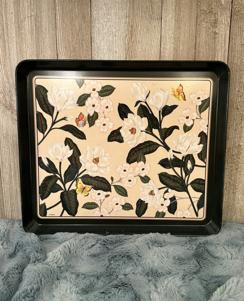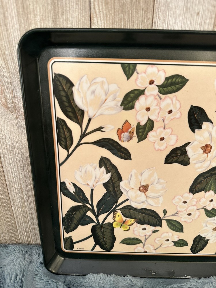Design Imports, Ltd. Serving Melamine Tray ITALY Magnolias, Butterflies 12x10.5”. Some chips in the paint as noted in pictures. Sold as is...
