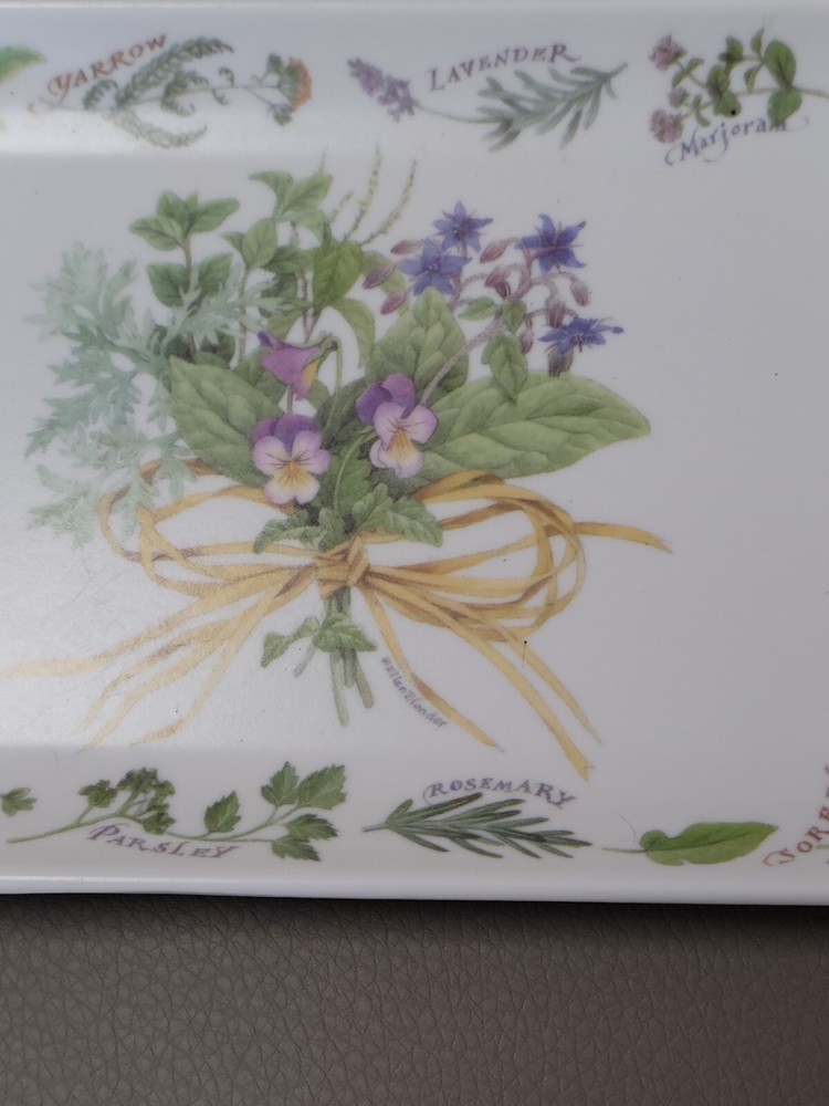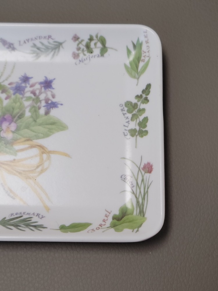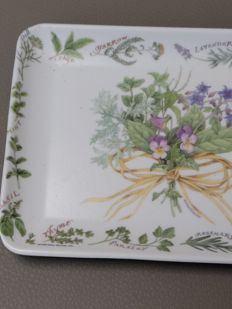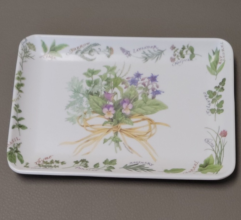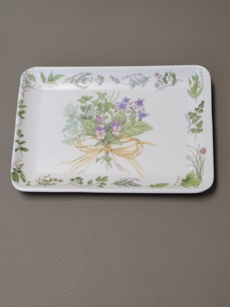 This beautiful trinket dish tray is a must-have for collectors and home decor enthusiasts alike. Made from high-quality melamine material, this tray is durable and long-lasting. The intricate design features lovely herbs and flowers, bringing a touch of elegance to any space. It measures approximately 4" x 6". Perfect for use as a vanity tray or for serving small treats, this piece is versatile and functional. Its multicolor design and Italian craftsmanship make it a unique addition to any collection. Don't miss out on the opportunity to own this stunning piece!