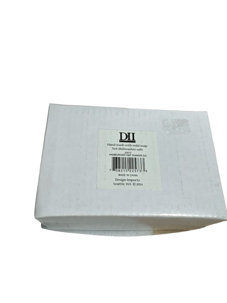 Design Imports Novelty Hamburger Salt Shaker & Pepper Shaker New In Box...