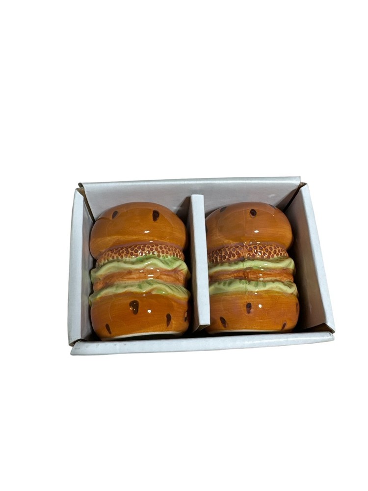 Design Imports Novelty Hamburger Salt Shaker & Pepper Shaker New In Box
