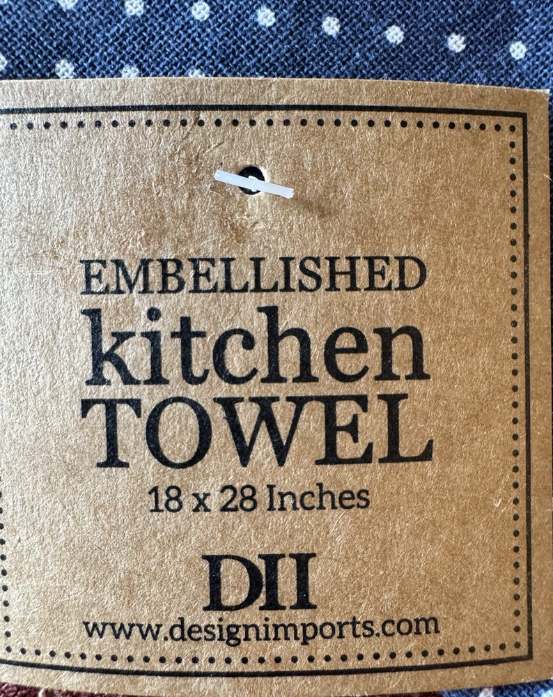 Design Imports Patriotic July 4th Dish Towels 2 Brand New Americana Independence Day Embellished Towels; 100% Cotton;Measures 18"x28"; New with Tags