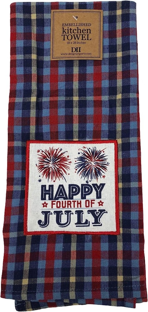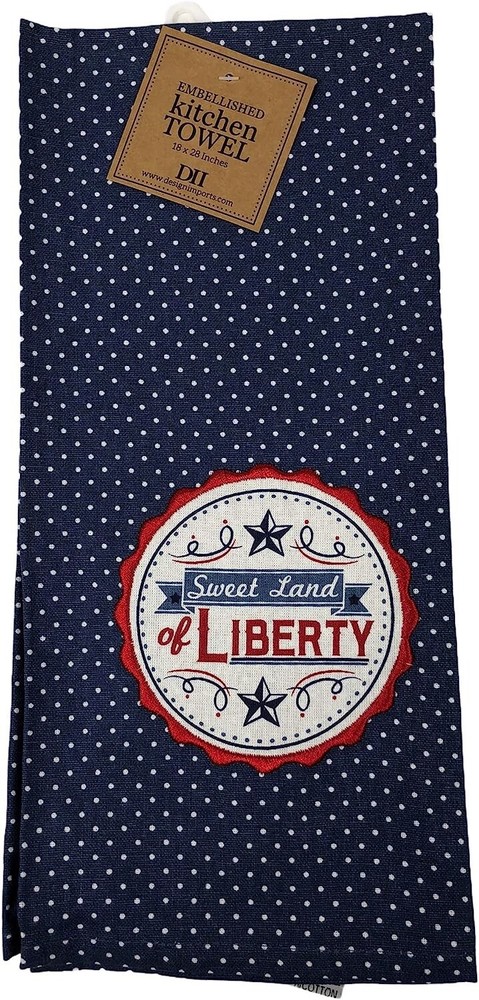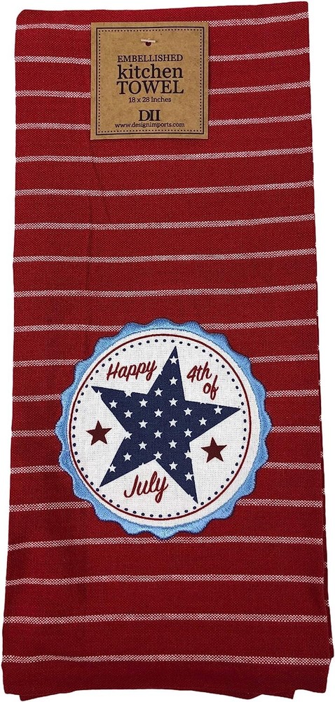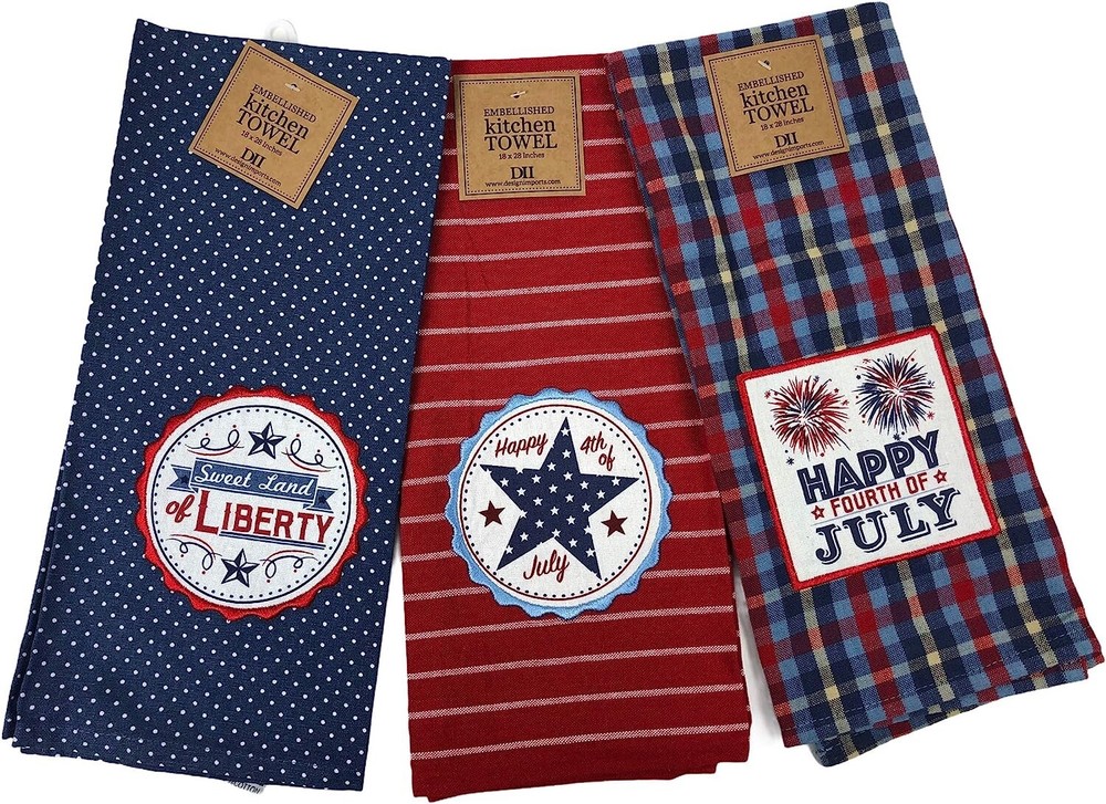- Design Imports Patriotic Embellished Dishtowel Set of 3 - Brand new with tags - Made of 100% Cotton - Includes 3 different dishtowels with patriotic themes. - Each towel measures 18" x 28"