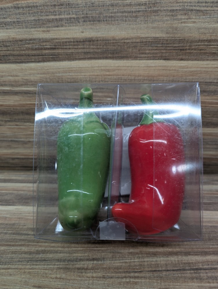 The Design Imports Peppers Ceramic Salt & Pepper Shakers are a set of two antique-style shakers featuring a pink color and animal shape design. Crafted from ceramic, these shakers are original pieces perfect for all occasions. The set includes a pepper shaker and a salt shaker, making them functional kitchen tools with a charming animal theme. Perfect for adding a touch of whimsy to your dining table or collection of kitchen gadgets.