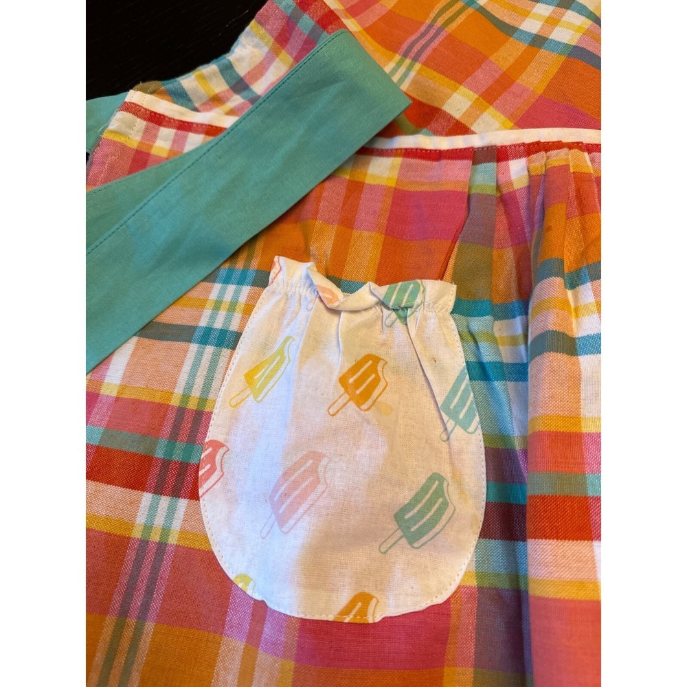 Design Imports Plaid Full Apron Novelty Popsicle Print Blue Orange One Size Features: • Pockets • Ruffle Detail • Apron • Plaid Size: Unisex One Size Condition: Pre-Owned Good Preowned.
