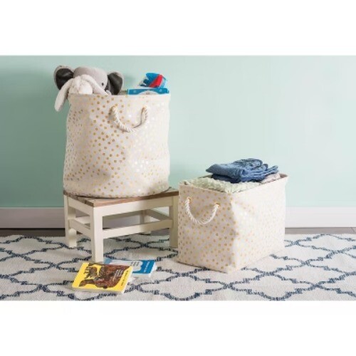 Absolutely love this stylish gold dot bin—it adds the perfect pop of glam to my space! The reinforced bottom keeps its shape while the cotton rope handles make moving it a breeze. Collapses flat for easy storage, and the quality is fantastic. A must-have for any home looking to stay on-trend yet functional!