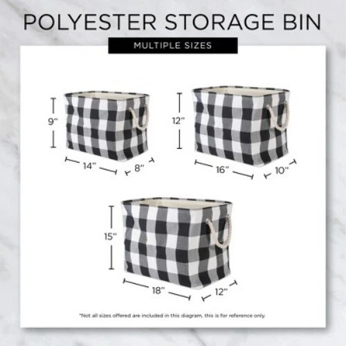 Description Polyester storage bins are a fun and creative way to organize and store toys, clothes, blankets, towels, books, knick knacks and more. Tired of clutter in the kids room, living room, or laundry room? These storage containers could be the perfect solution to organize the clutter while enhancing your home’s décor. These trendy bins have become very popular due to their simple yet chic look and dependability. Sturdily constructed these storage bins are up to the task of being carried to-and-fro, used to transport groceries, laundry, or household goods these bins will handle it. The material and construction offers a long lasting bin that you can use over and over again. Get creative with fun designs and colors that are easy to mix and match with an assortment of sizes, colors, and patterns. Bring color and interest to a dull room with vibrant hues and a sophisticated look while also adding functionality. These trendy bins have become very popular due to their simple yet chic look, versatility, and dependability. highlights 13x13x13 inches with O-ring and cardboard bottom to reinforce shape and give structure, simply collapse bin and store when not in use. Reinforced cotton rope handles make for easy and comfortable transporting and sturdy bottom retains shape after each use. These bins are available in fun, trendy and adorable styles and colors, a perfect addition to a nursery, home office, craft room, adds a splash of color to any room while also being functional. Find a place for knick knacks, children's toys, magazines, craft supplies, and more with these sturdy, everyday bins.