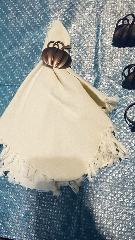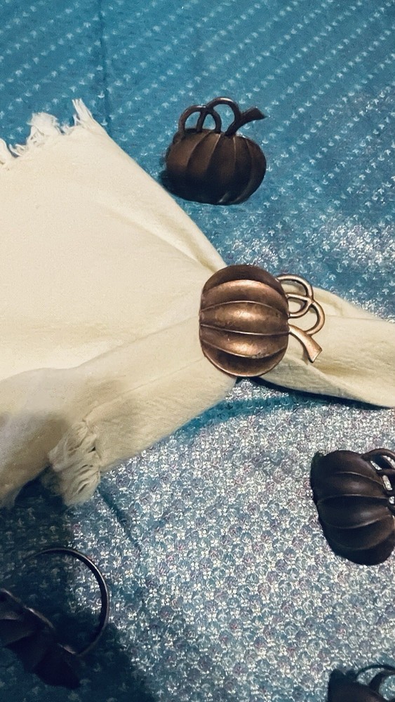 Elevate your dining experience with these exquisite Design Imports Pumpkin Napkin Holders. Made of high-quality brass with an antique copper finish, these holders exude a classic and sophisticated vibe that will complement any table setting. The pumpkin pattern adds a touch of autumnal charm, making it perfect for fall-themed dinners or Harvest Thanksgiving celebrations. This set includes six napkin holders, making it ideal for entertaining guests or for use in a restaurant or banquet setting. These holders are multipurpose and can be used for any occasion. They are not part of a custom bundle and do not have a brand bundle description. The holders are made of brass , Add a touch of elegance to your dining experience with these beautiful napkin holders.