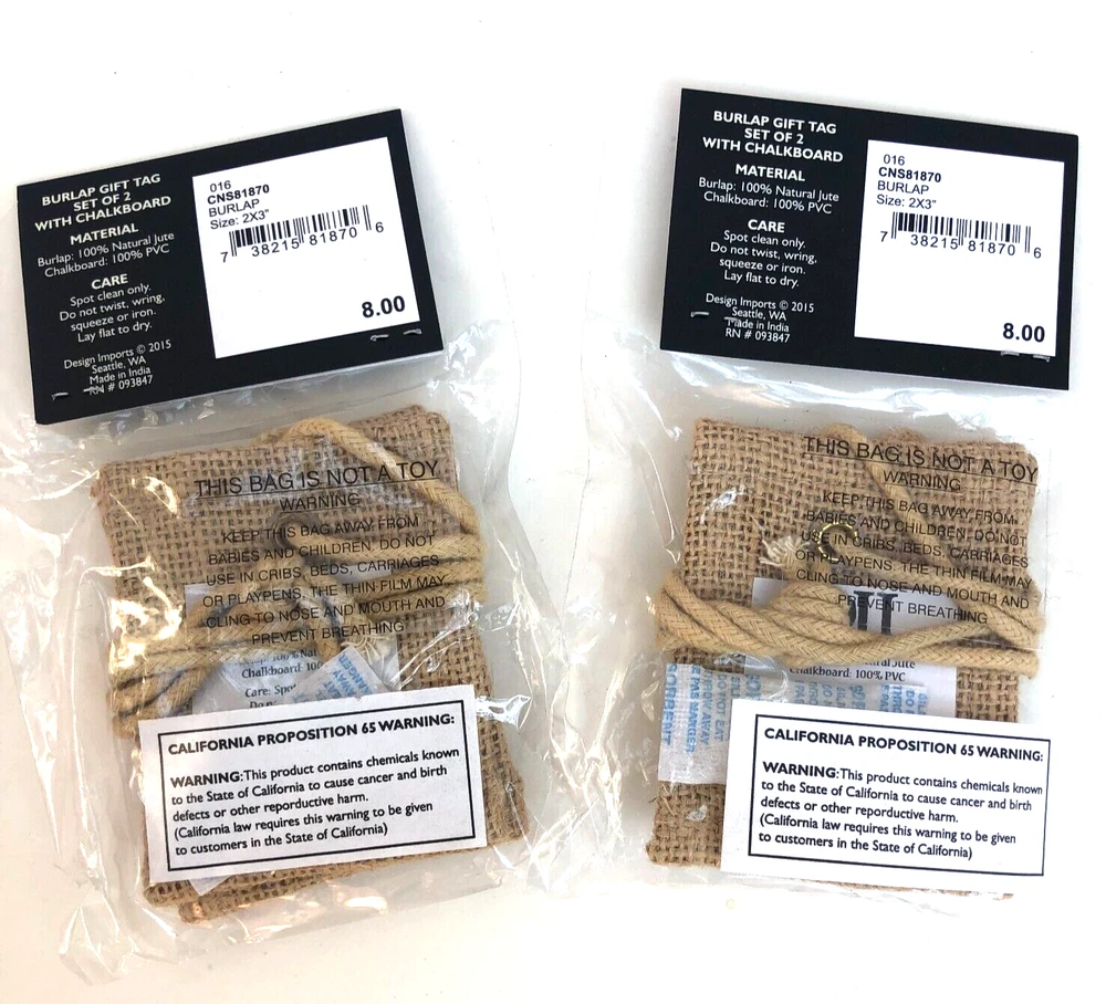 Design Imports Reusable Gift Tags, Burlap with To/From Chalkboards, 2 Sets of 2 tags each - NWT, MSRP=$8 ea pack Brand New - Unopened A Great Way to be Eco-Friendly and Creative with Your Holiday Gift Giving this Season Please feel free to reach out with questions before purchasing. This will help assure you’ll be satisfied with your purchase when received. Item is sold as pictured. All of my items are clean, from a smoke-free environment, and generally ship USPS First Class or Priority Mail within 24 hours of payment being received. As with any item purchase, it is still recommended you sanitize/launder your items prior to personal use. My goal is to have happy buyers so, if there’s any issue with your item matching the description/photos, please contact me immediately through ebay email and I will work to resolve the issue. I do my best to describe accurately and measure approximately at the time of listing. My seller rating relies on positive feedback so, Thank You, in advance for taking a moment of your time after you receive your purchase to leave a 5 star rating. I hope you thoroughly enjoy your purchase and visit back often.
