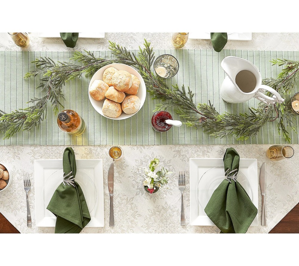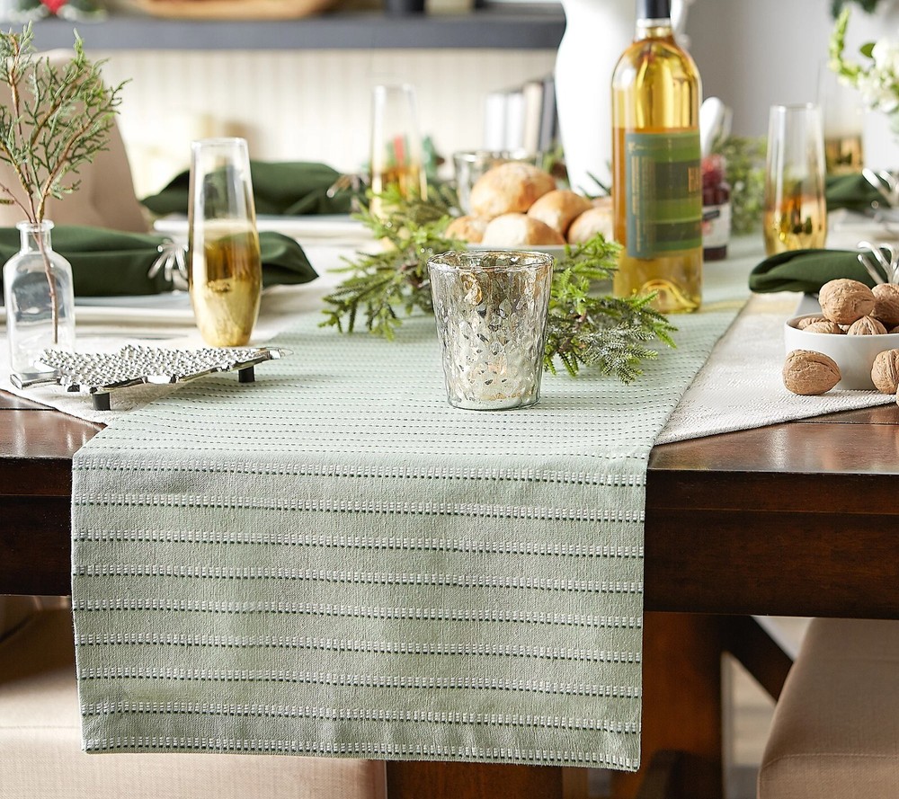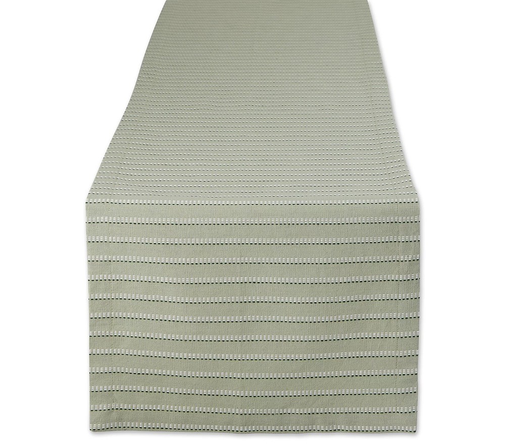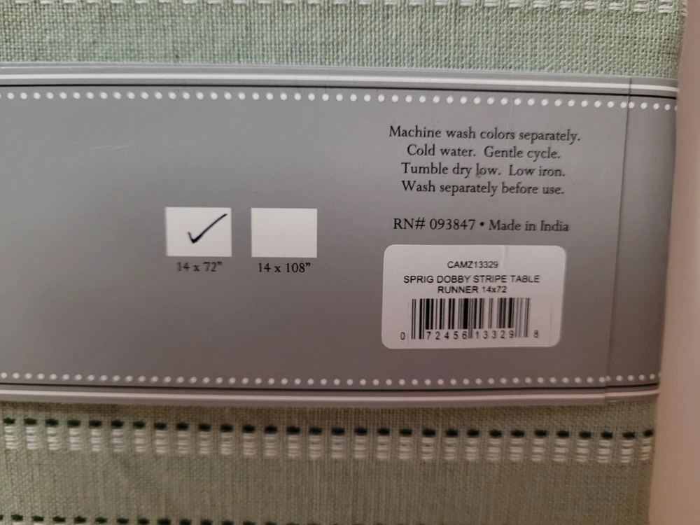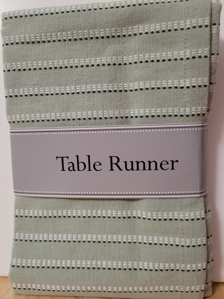 Design Imports Sprig Dobby Stripe GREEN Table Runner 14 x 72 Dobby stripe design 1" hems; mitered corners Measures approximately 14" x 72" 100% cotton Machine wash, tumble dry Measures 14 x 72 inches with 1 inch hem with mitered corners. Appropriate for a table that can seat 4 - 8 people 100-percent cotton machine wash in cold water separately, gentle cycle, tumble dry low. Low iron if needed Classic stripe table runner can be used on it's own or pair with other items in the DI collection Place lengthwise onto console tables, dining tables or entryway tables to instantly update up any room * Note: Your order is fulfilled from a non-smoking & pet-free environment* Shipping Policy : * We'll only ship the item to your confirmed Address. * We have no responsibility for incorrect shipping Address, so please confirm accuracy of your shipping Address * Fulfillment Timeframe: Monday ~ Friday (excluding holidays). Orders received during Weekends & Holidays will be shipped the following business day * Your USPS Tracking Information will post at the time the shipping label is printed. Return Policy: * We are unable to initiate/process a return, thus unable to honor 'Buyer's Remorse' * We are unable to honor any " Not as Described" Return for damaged merchandise during transit * Please understand we are outlining this policy to prevent abuse, and will proactively report any such abuse Feedback : Our aim to earn positive 5 Star feedback for every Item listed. If you're happy with your purchase, please take a moment to leave positive 5 Star Feedback. If you have any issues with your purchase, please contact us directly using Ebay Message Service to resolve the issue. Thank You for viewing. Browse other items for sale at this time to find your next new treasure! Check-Out Now to proceed with the payment process toward speedy order fulfillment!