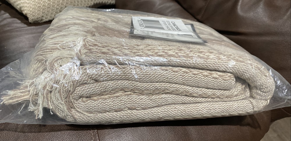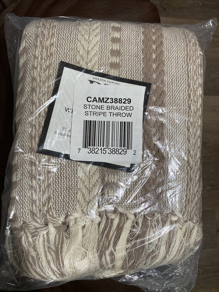 Design Imports Stone Braided Stripe Throw Blanket 50"x60" New. New in plastic. 100 percent cotton.