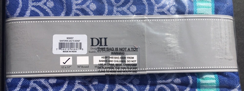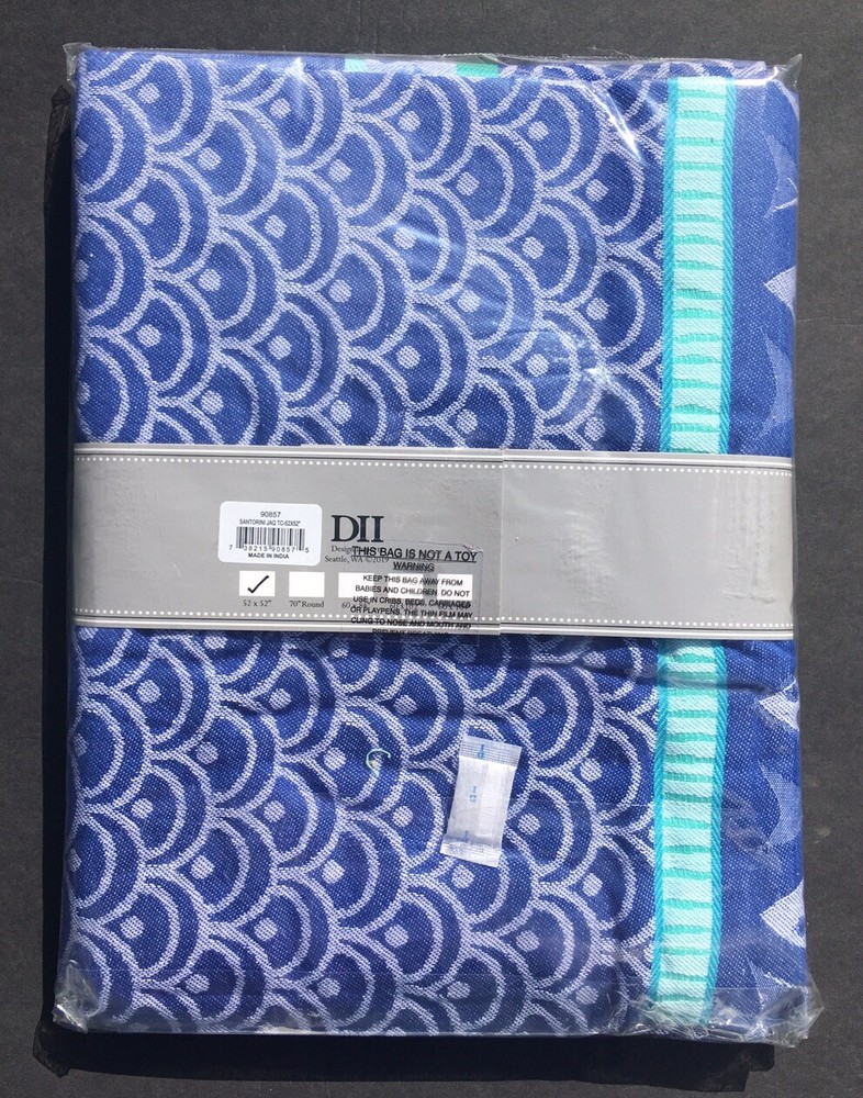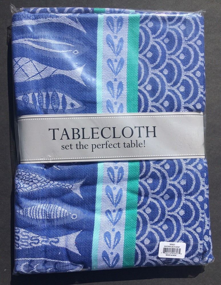 Design Imports Tablecloth Santorini 90857 52 Inches By 52 Inches Square Fish, Ocean Theme Blue, Green, White Tropical, Summer, Picnic Made In India DII 2019 New In Package Outer packaging may have sticker residue . Color appearance may vary depending on monitor. Returns accepted within 30 days. Buyer pays return postage. Item must be returned in the condition in which it was received.