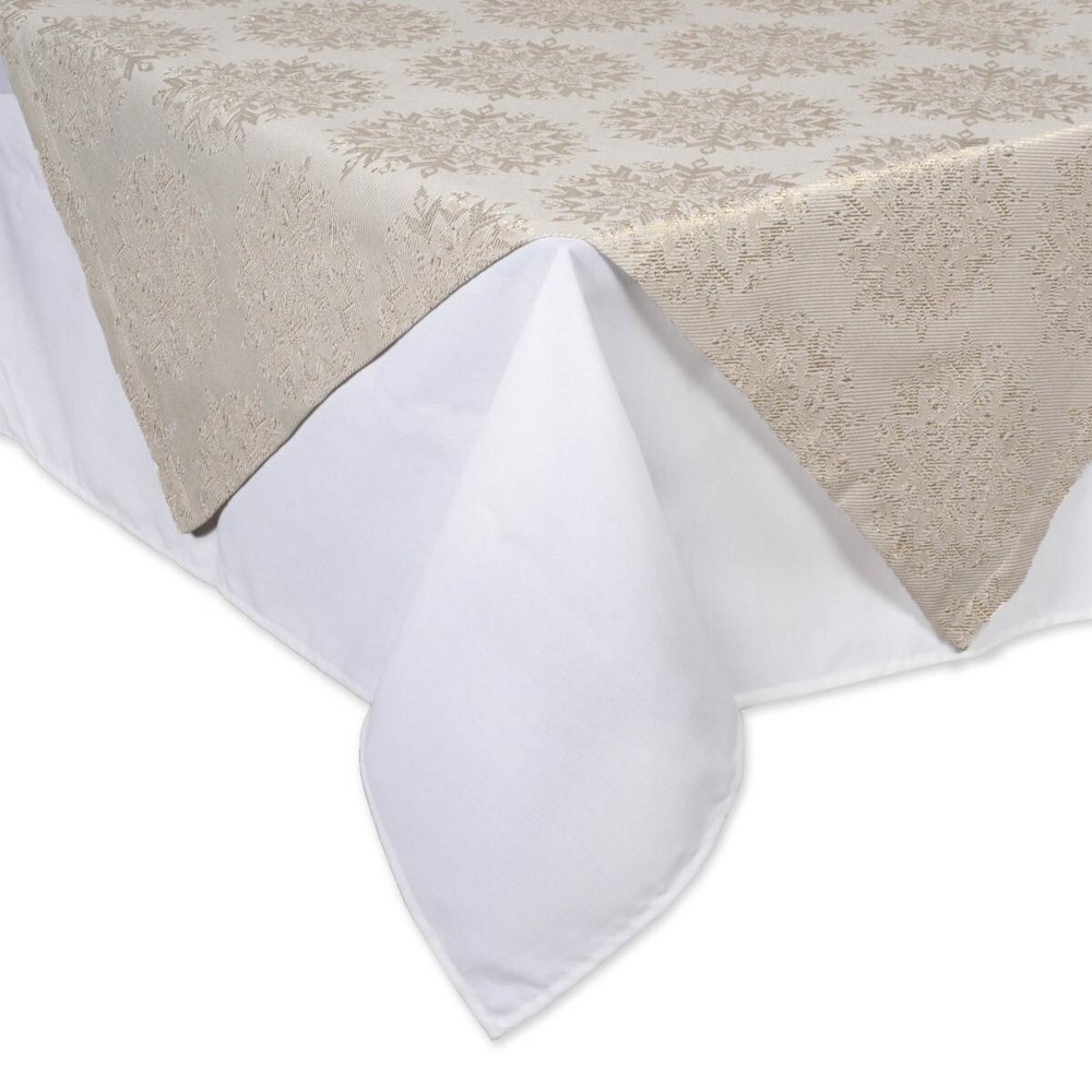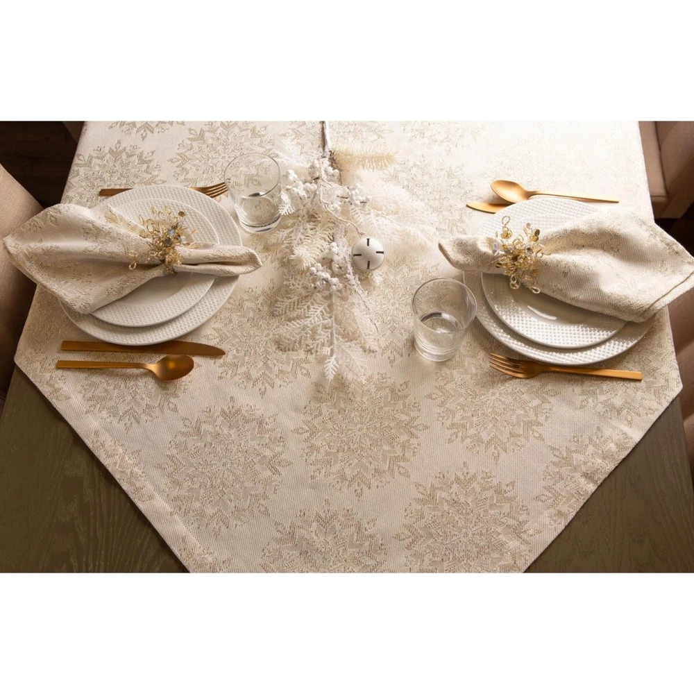 Design Imports Winter Sparkle Jacquard Metallic Square Table Topper New Design Imports Winter Sparkle Jacquard Metallic Square Table Topper The perfect accent for family dinners and holiday entertaining, this square topper adds a touch of shimmer and snowflakes to your table. 86% cotton and 14% metallic fibers Machine washable Measures approx. 40"W x 40"L Imported RETURN POLICY: Returns will only be accepted if the item is in brand new condition with the original packaging that it was sent to you. If the item has been used it will not be accepted as a return. Returns will only be accepted if the item is unopened. There will be a 20% restocking fee on all returns. COMBINED SHIPPING: WE DO COMBINE SHIPPING IF YOU PUT THE ITEMS INTO THE CART IT WILL AUTOMATICALLY COMBINE AND DISCOUNT THE SHIPPING FOR YOU. To return an item, you must contact us within 30 days of receiving the merchandise. Please inspect your merchandise the moment it arrives. We will issue you a RA (Return Authorization) number and provide instructions for the return. Once the RA number is issued, your package must be post-marked within 5 days of the return authorization date. If you exceed the above specified time frame (ie. Did not contact us 30 days after receiving the merchandise or packages was not post-marked within 5 days of RA authorization date) or we receive an unauthorized refused package or an undeliverable package, you will be subjected to a 20% restocking fee. The restocking fee is based on the merchandise total amount (shipping fee not included). Items that are returned without a RA number are not eligible for a refund. Please note that refunds are given for the cost of the merchandise (merchandise plus tax) only. Shipping charges are non-refundable for returns.
