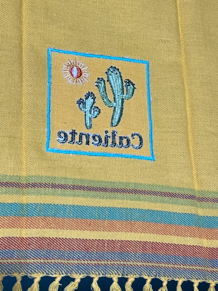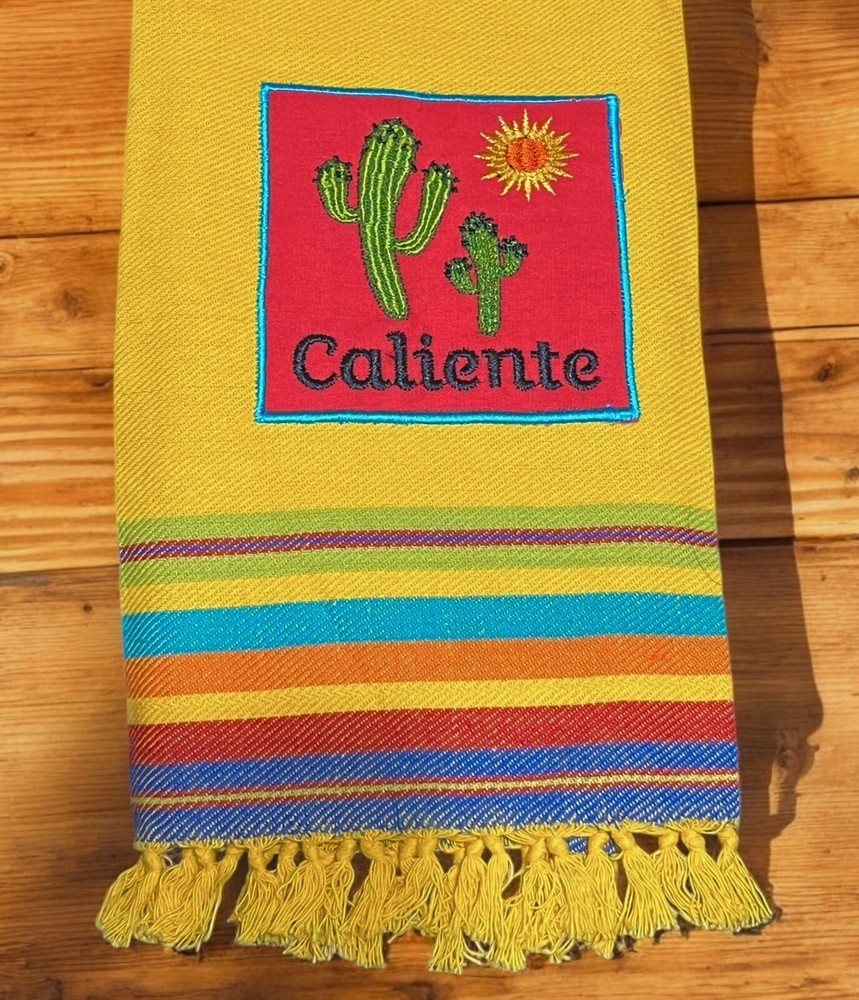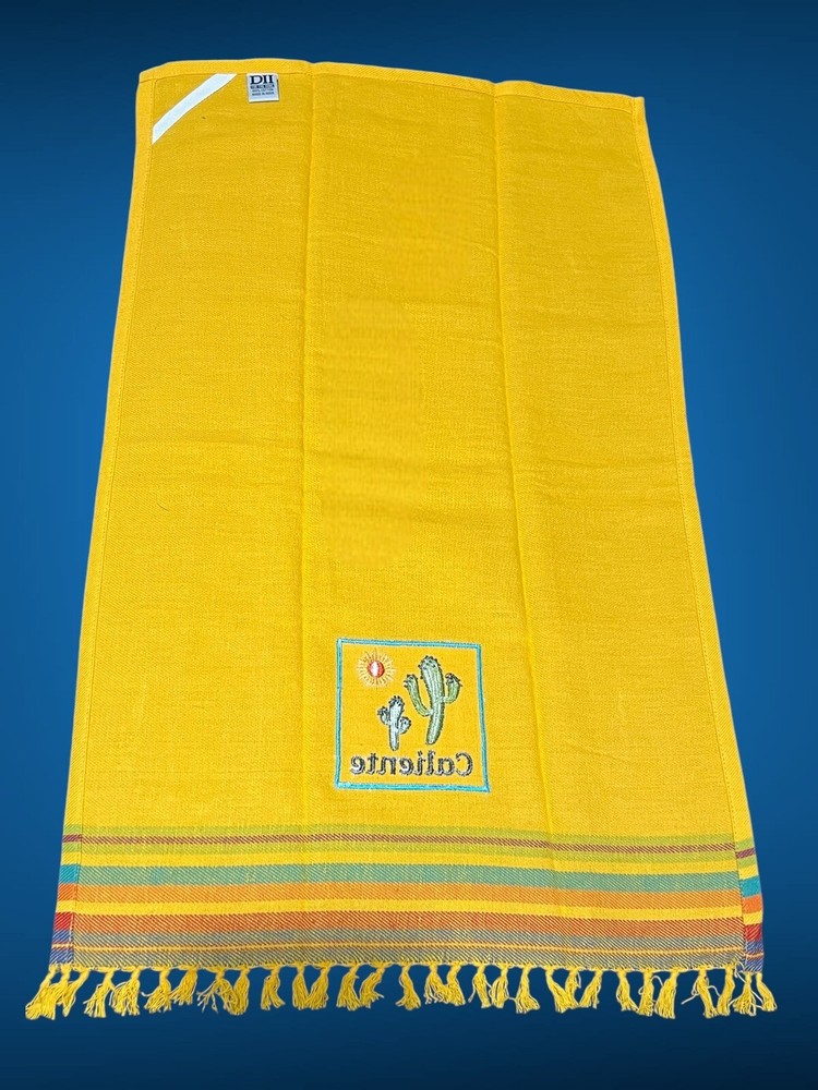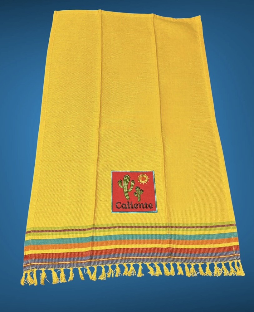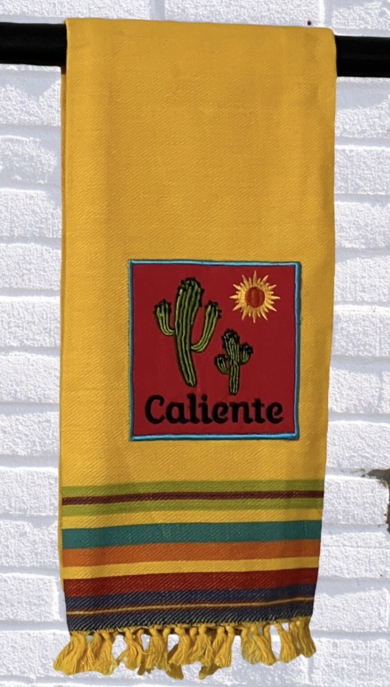 Add a touch of Southwest style to your kitchen with this Design Imports “Caliente” yellow Embroidered Cotton Kitchen Towel. Made of 100% cotton, this multipurpose towel features a colorful embroidered design of a cactus and sun, perfect for adding a pop of color to your dining table. The towel is machine washable and tumble dryable, making it easy to care for. New without tags