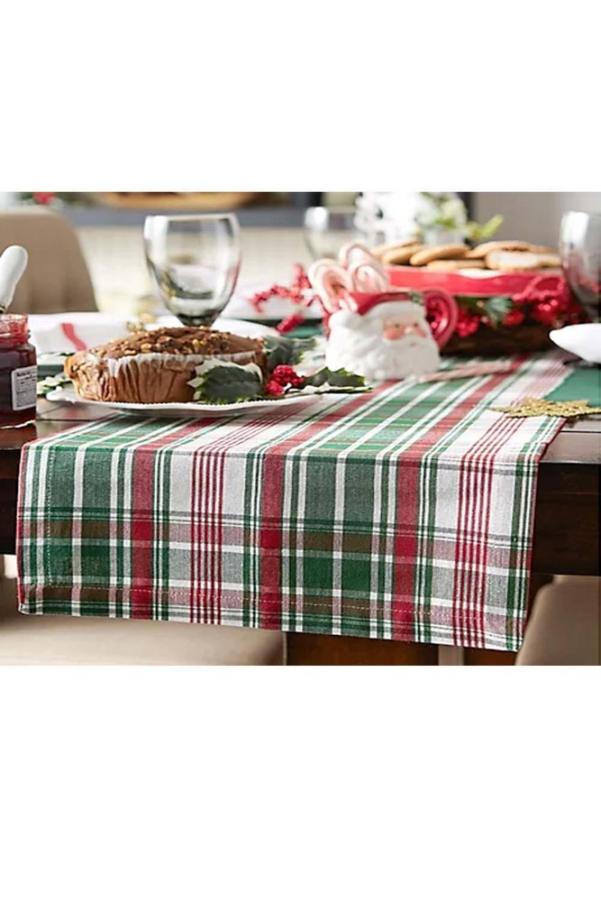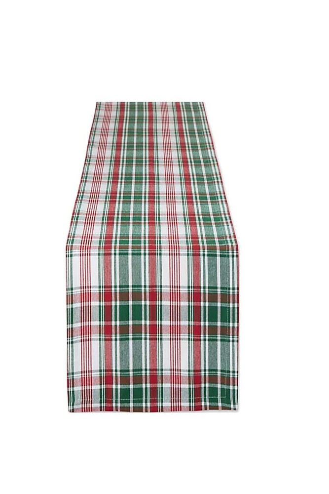 Plaid design Measures 14" x 108" 100% cotton Machine wash, tumble dry