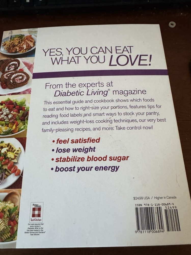 The product is a spiral-bound cookbook titled "Diabetic Living Diabetes What to Eat" by Better Homes and Gardens Books Staff. Published by Houghton Mifflin Harcourt Publishing Company in 2011, this edition offers 336 pages filled with recipes and advice for those living with diabetes. With a focus on cooking and health & fitness, the book covers topics related to diseases, general health, and healing specifically for individuals with diabetic and sugar-free diets. Illustrated and written in English, this cookbook is a valuable resource for those looking to manage their diabetes through nutritious and healthy eating choices.