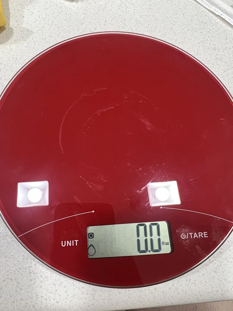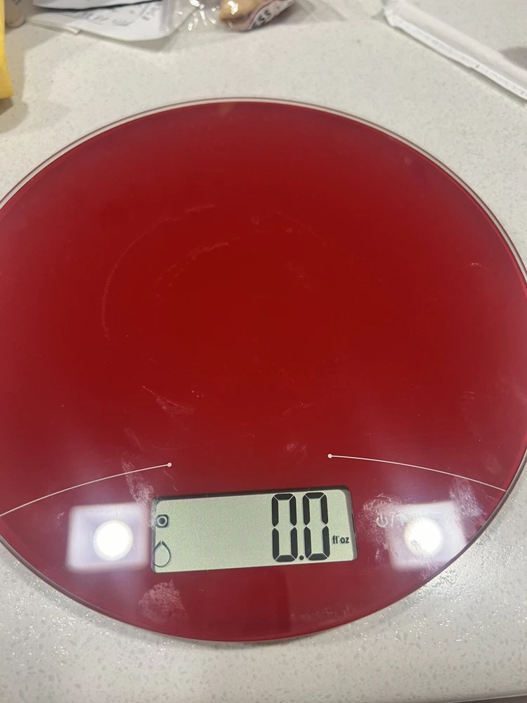 Digital Glass Food Scale Plate 7.25" Diameter 11lb Red Antimicrobial Surface Usa. This is a slightly used digital food scale. Can be used for food and small items up to 11lbs. Please feel free to ask ...